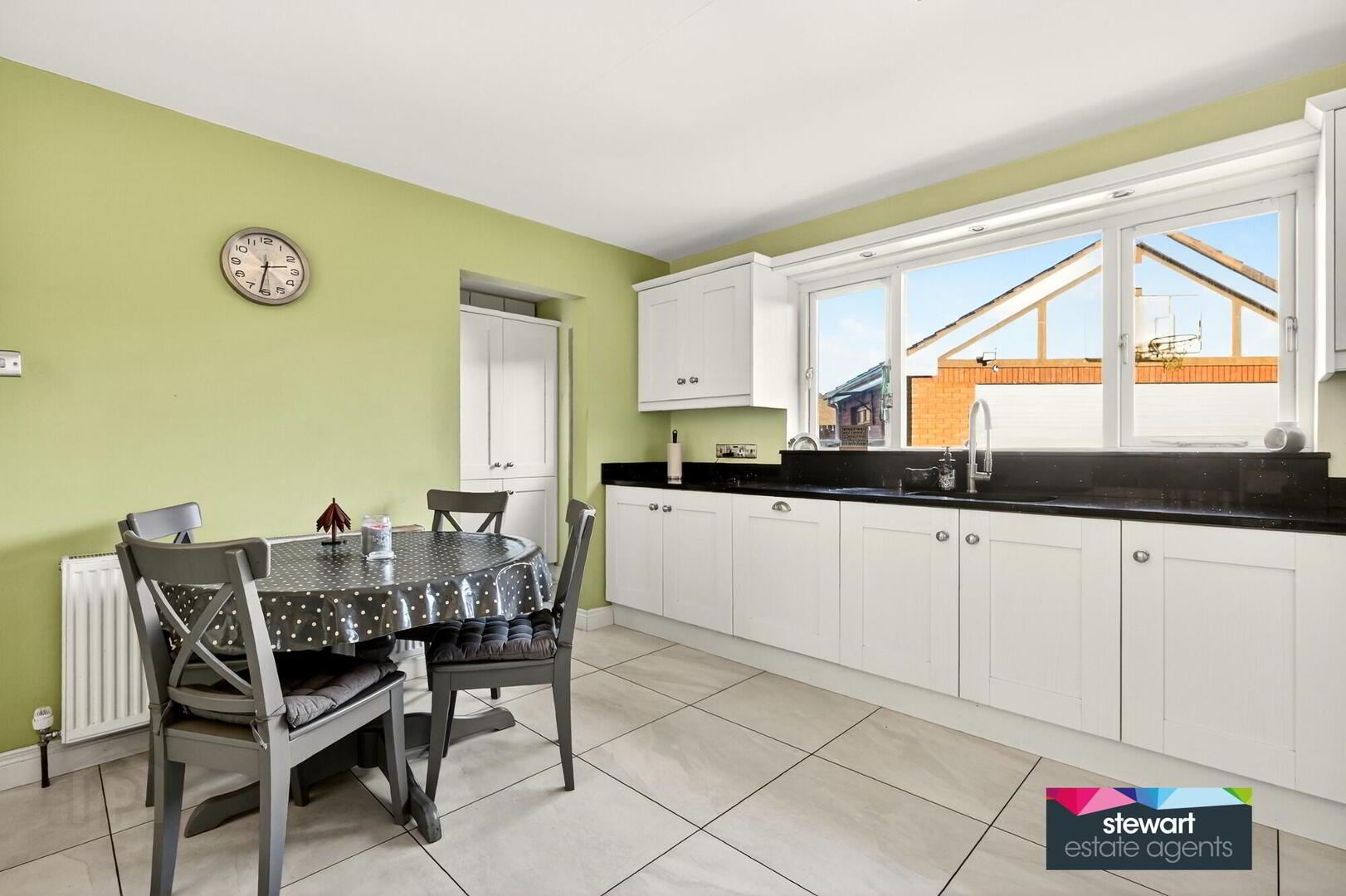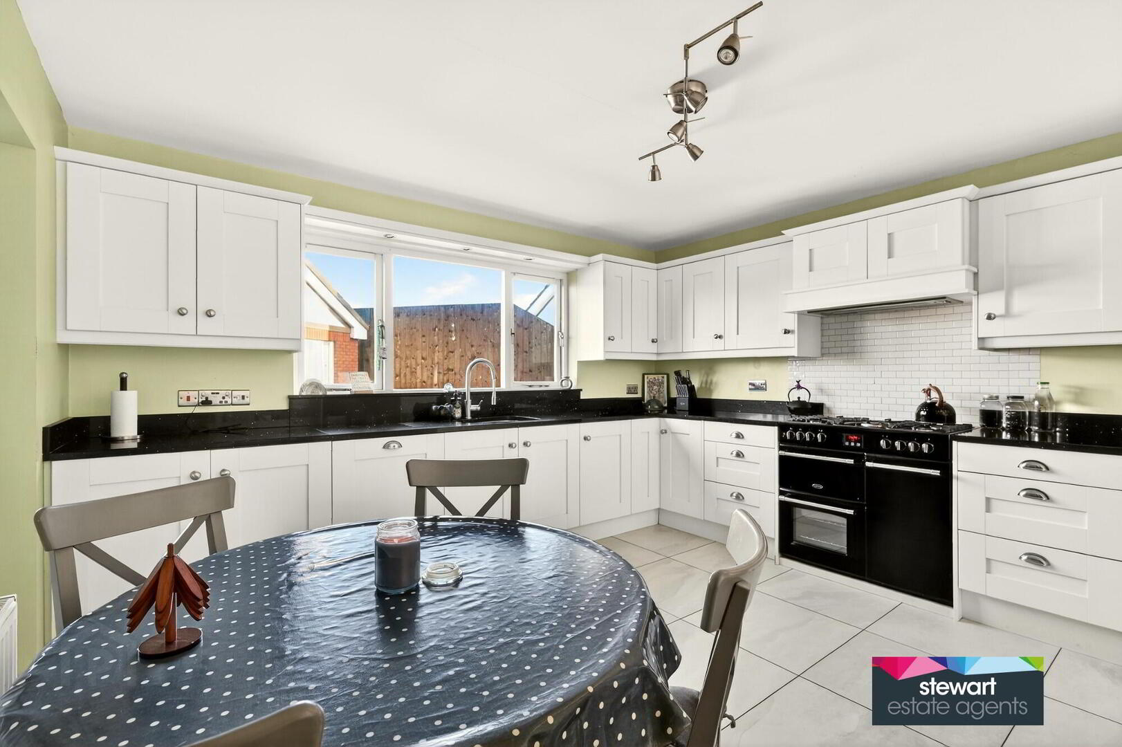 Spacious kitchen with a good range of fitted high and low level cabinetry finished with granite work surfaces. Built in dish washer. Space for a free standing range style cooker. Space for an inset double fridge/freezer