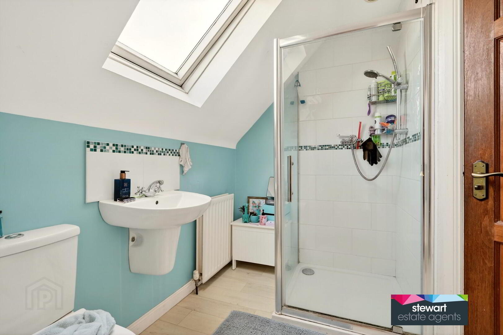 First floor shower room with shower, WC and wash hand basin