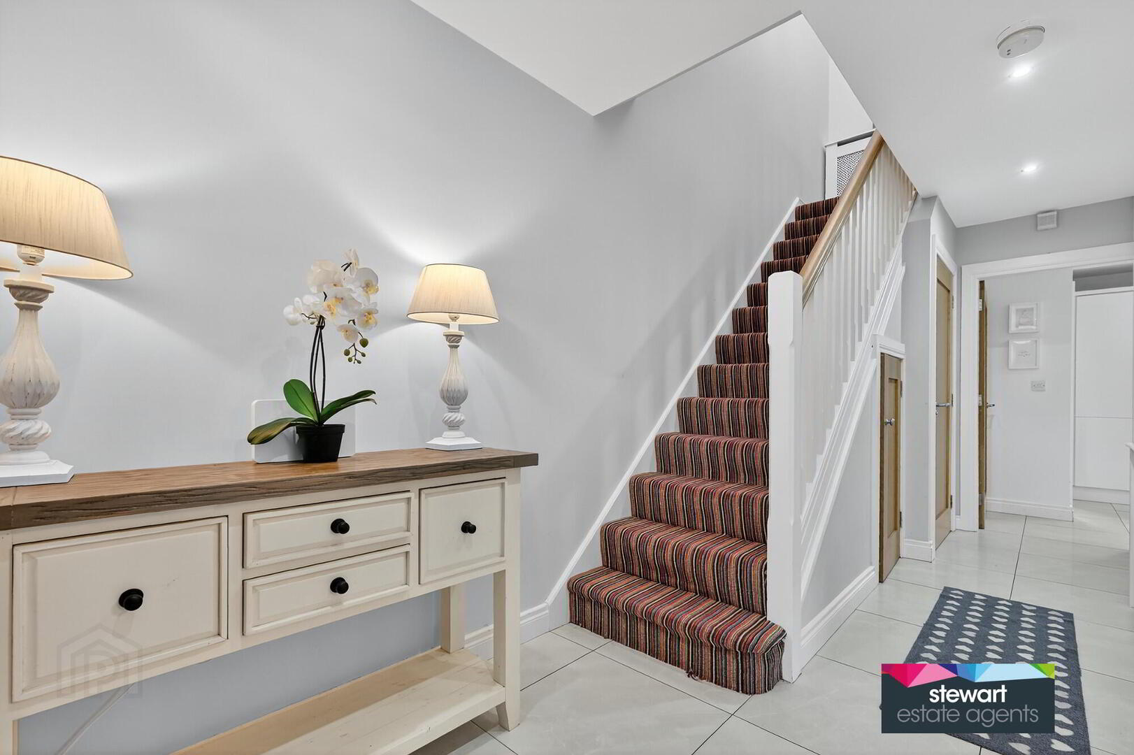 Spacious hallway with a spindled staircase to the first floor accommodation