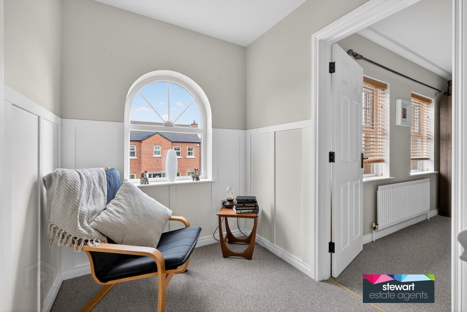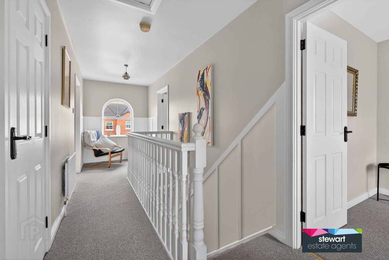 Bright and spacious gallery landing with feature panelled wall