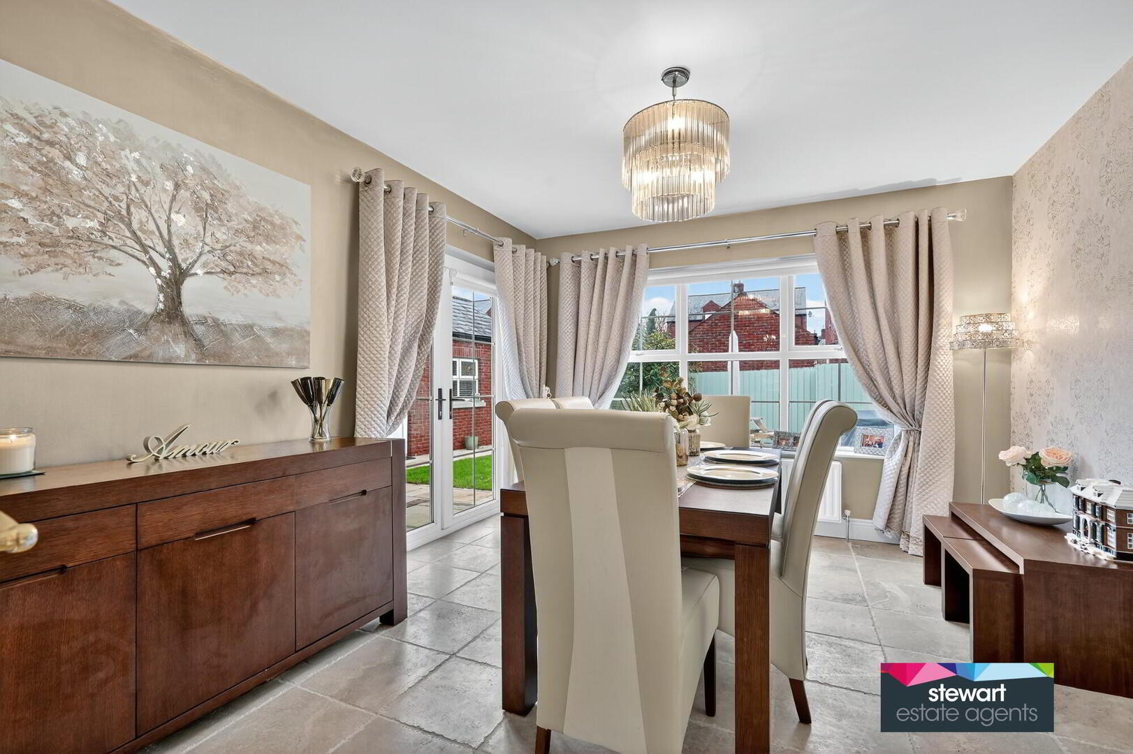 Dining room with a tiled floor and PVC double glazed double doors to the rear garden