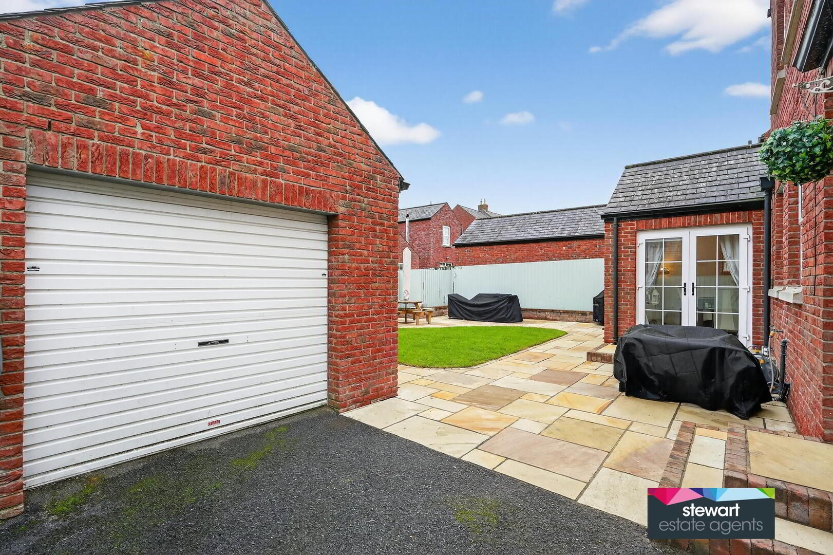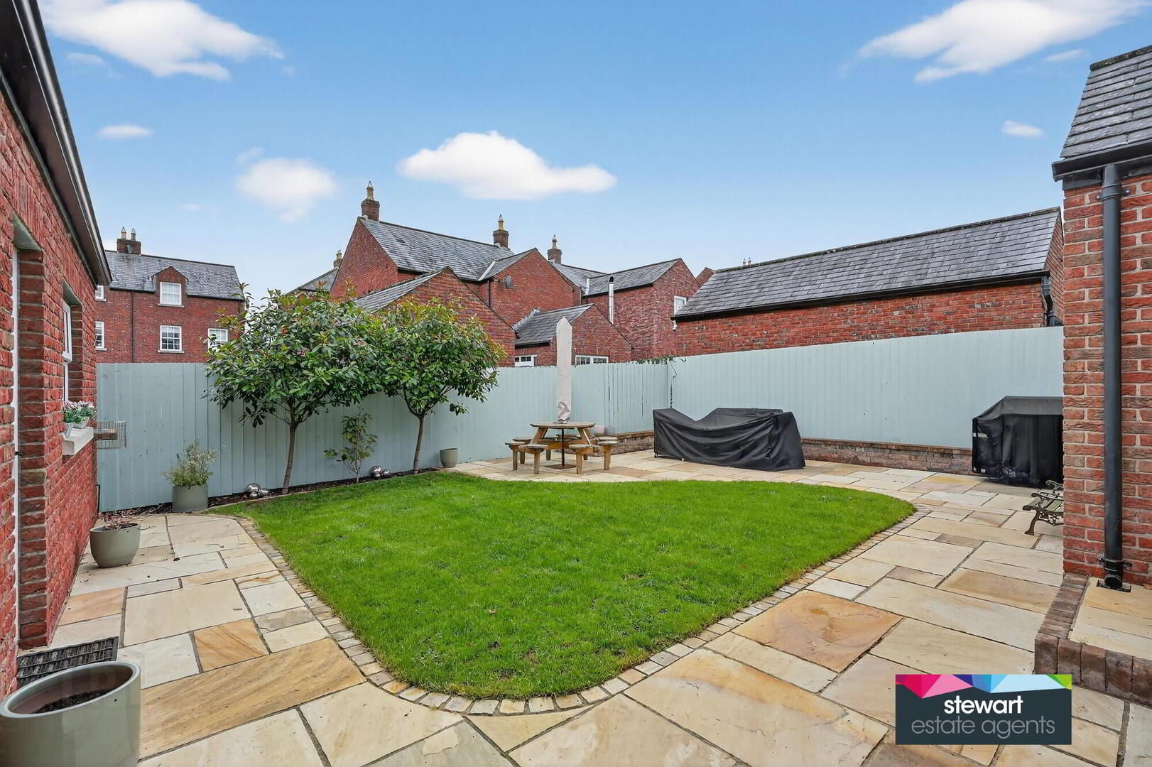 Neat gardens to the front and rear laid out in lawns. Beautifully paved patio area to the rear