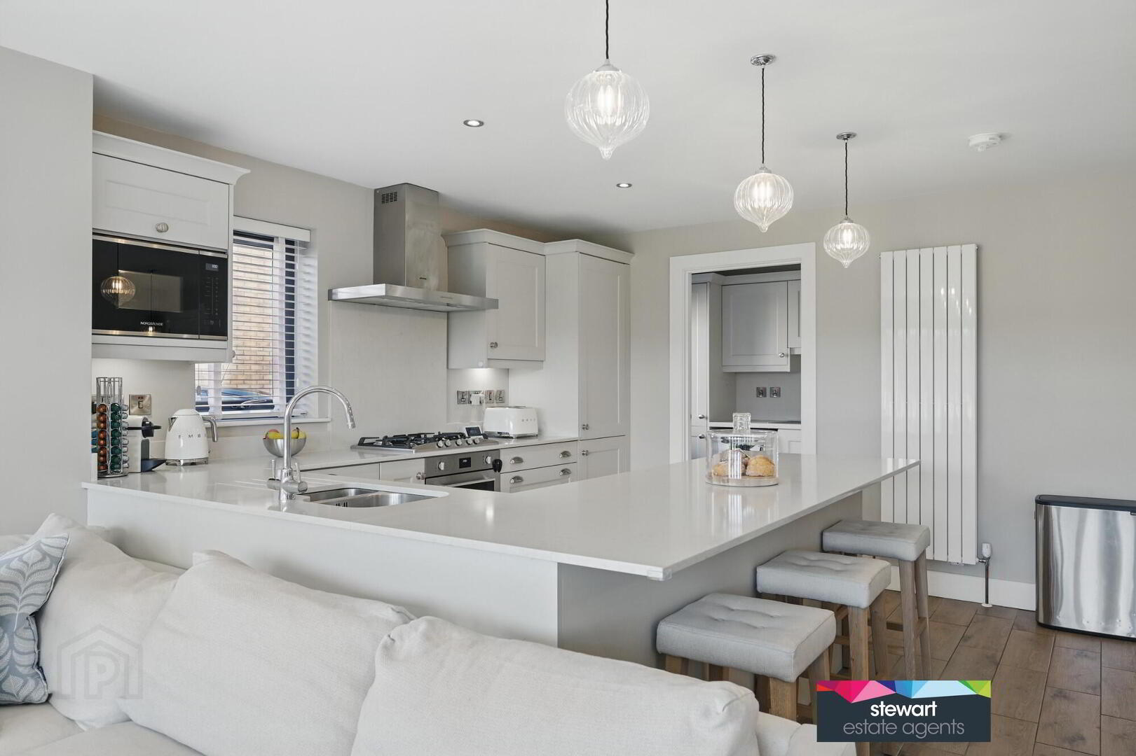A truly stunning contemporary style semi-detached home, enjoying a modern and stylish development of quality homes, located in a prime and exclusive Lurgan Road position and on the edge of the village for all amenities, as well as good bus services and road networks for other towns and cities. The property has a wonderful interior for modern living including a stunning open plan kitchen, dining and family room with a feature bi-fold patio doors to a private and spacious rear garden. Skilfully designed, this home provides a practical four bedroom layout with an ensuite shower room, downstairs cloak room and a good utility room which will immediately appeal to family market in particular.