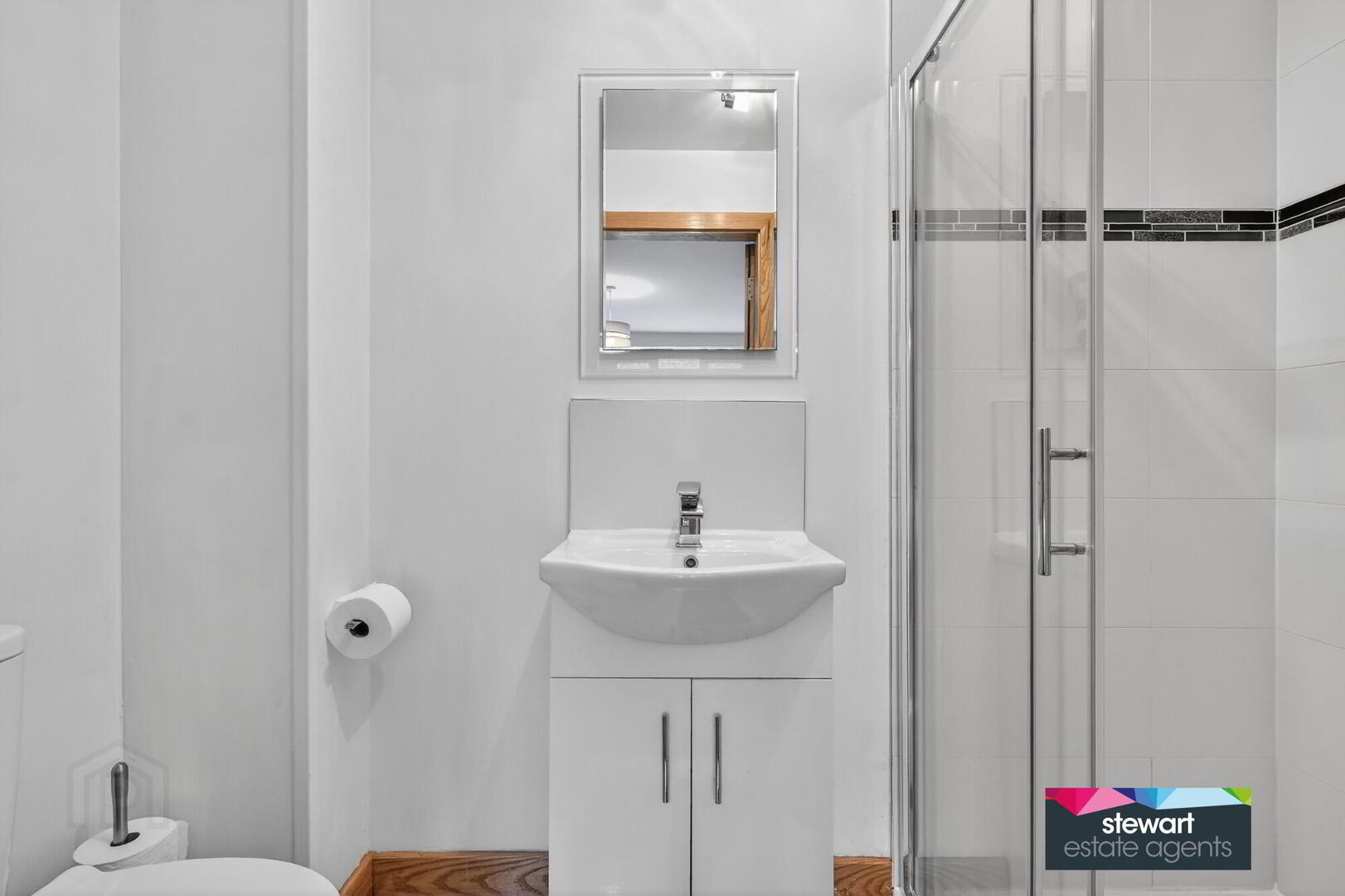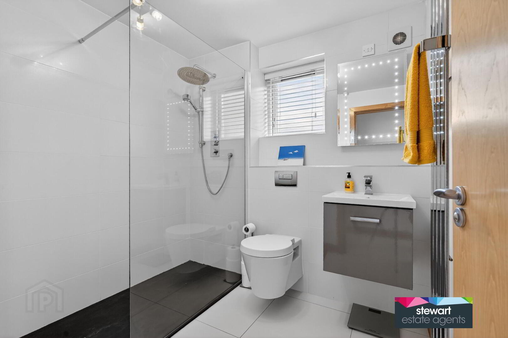 Shower room with a contemporary style refitted suite including a walk in shower area with shower fitment, WC and wash hand basin