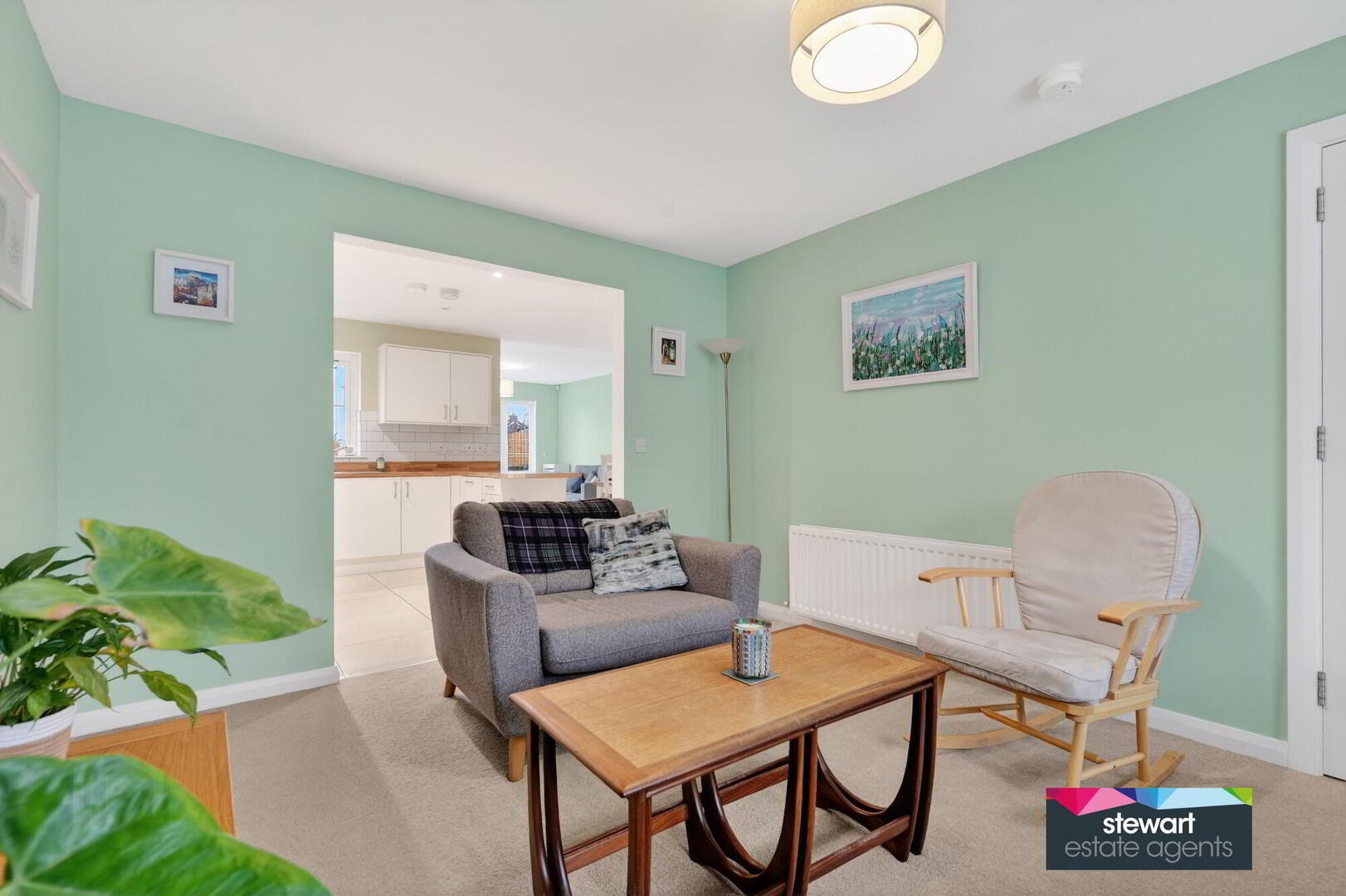 Neat gardens to the front and rear, laid out in lawns with an extended patio or barbecuing area