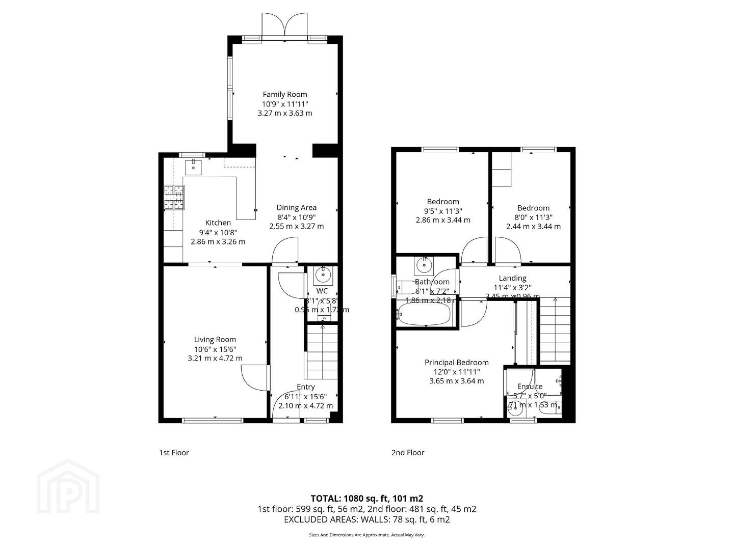 Three spacious bedrooms, master bedroom with ensuite shower room