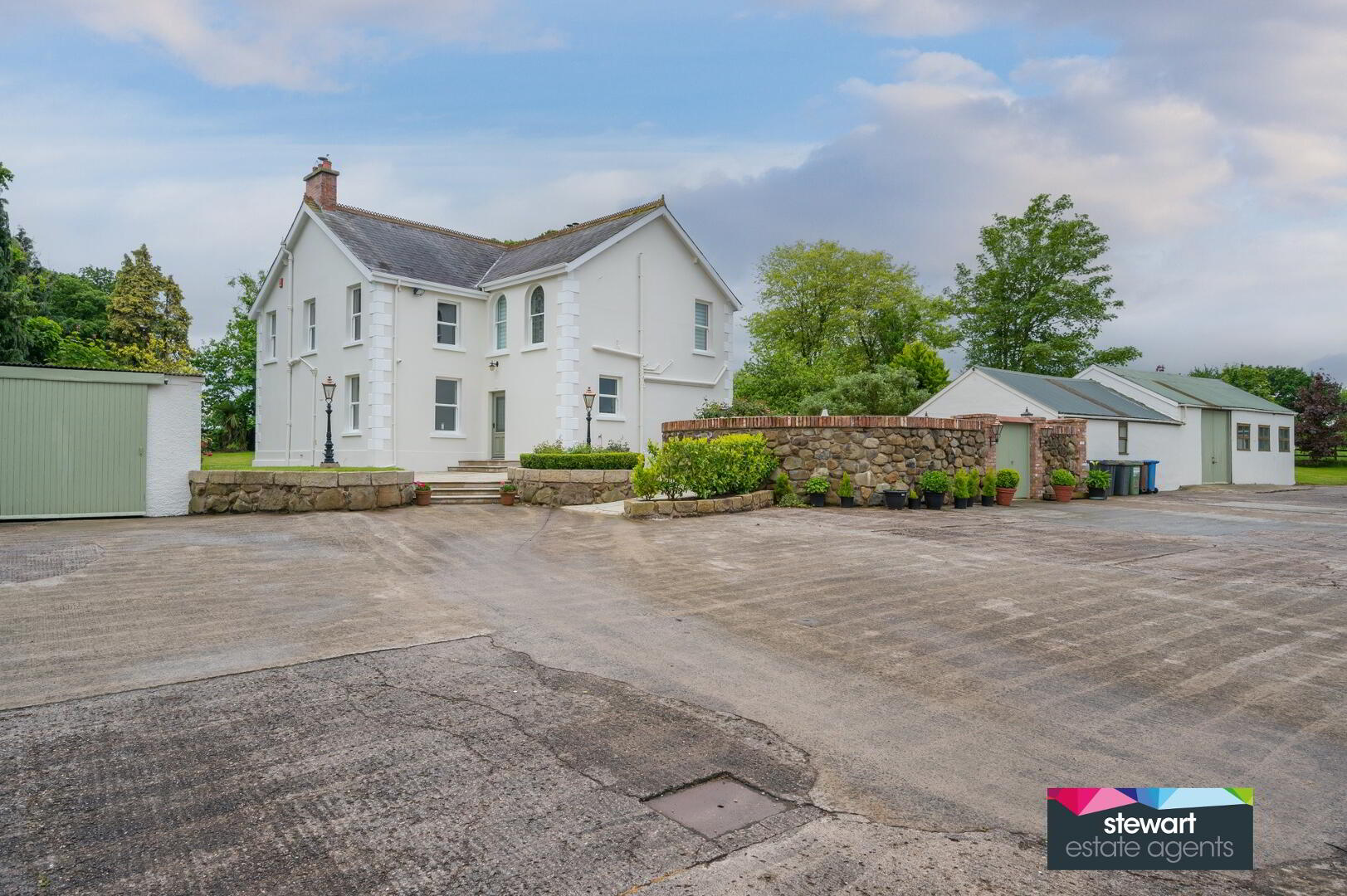 This truly magnificent detached double fronted country residence has been exquisitely and lovingly renovated from the original 1900’s character, forming part of a small holding with extensive business premises, that will appeal to those seeking that rare opportunity to reside as well as fulfil a profession in their own mature and secluded exclusive environment.