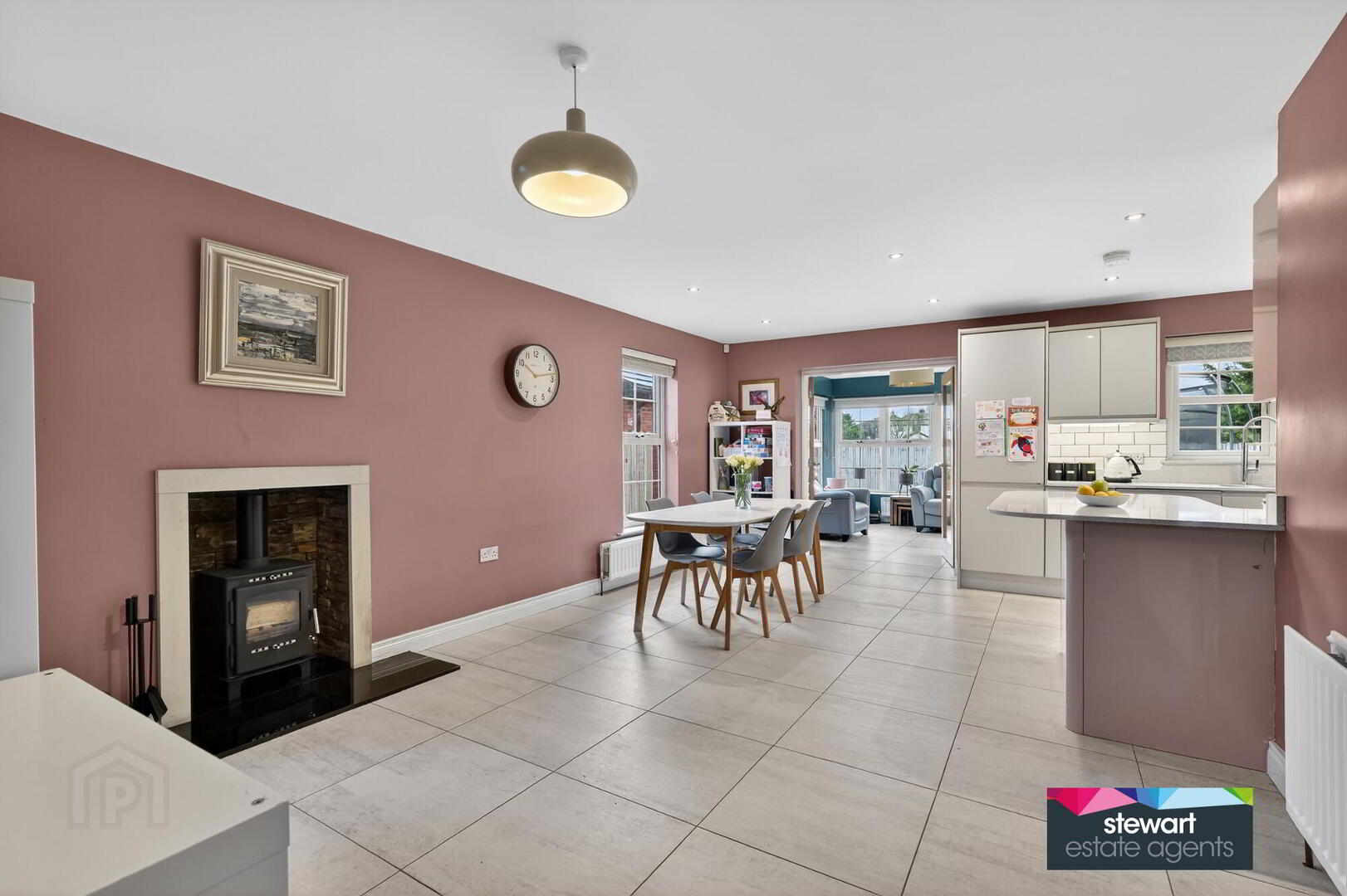 Family area with a feature inset cast iron stove