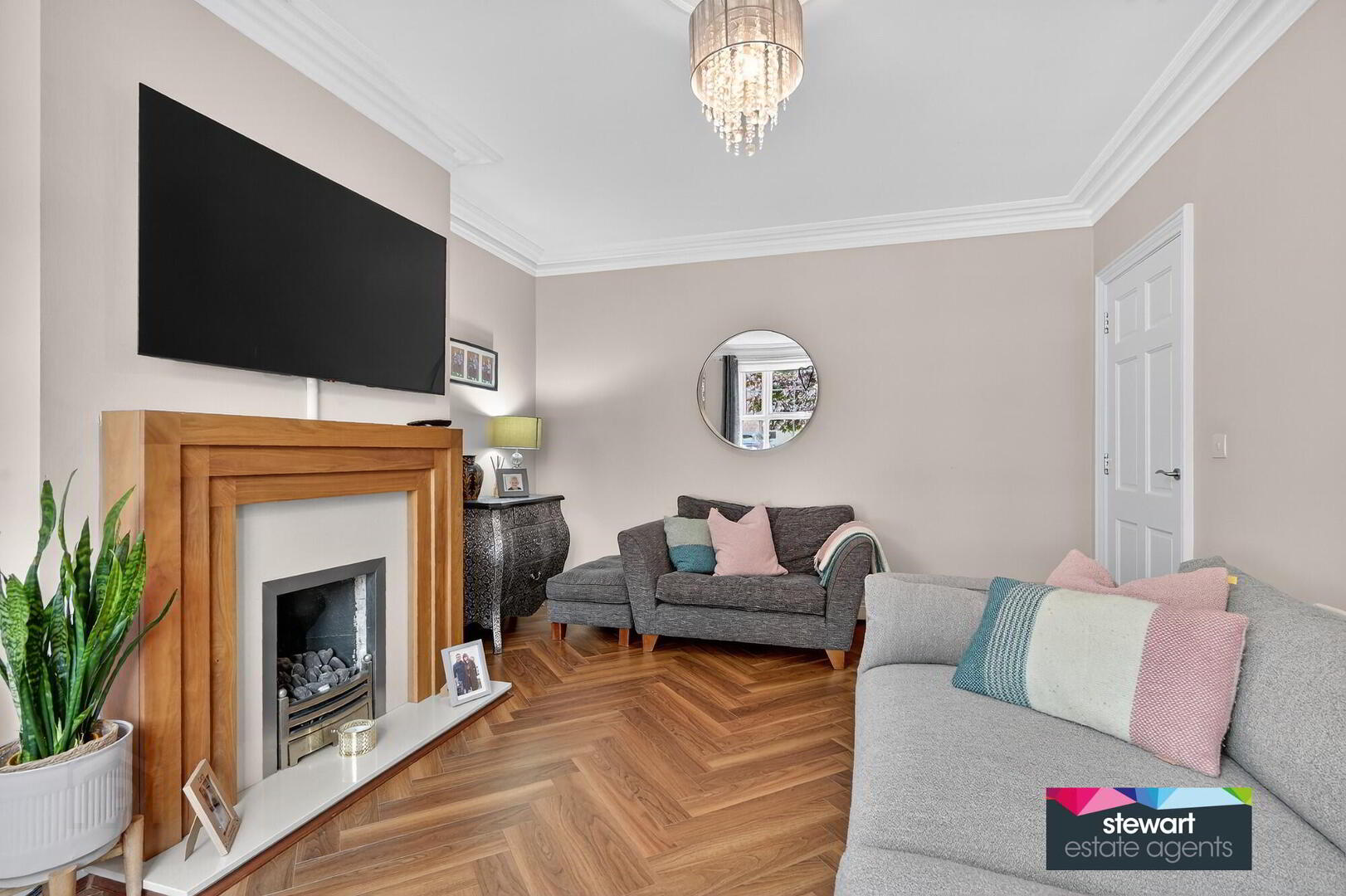 The property has a practical layout for modern living with stylish architectural features including an attractive front door and fan light, some ceiling cornicing and centre roses as well as stylish flooring and wall tiling.