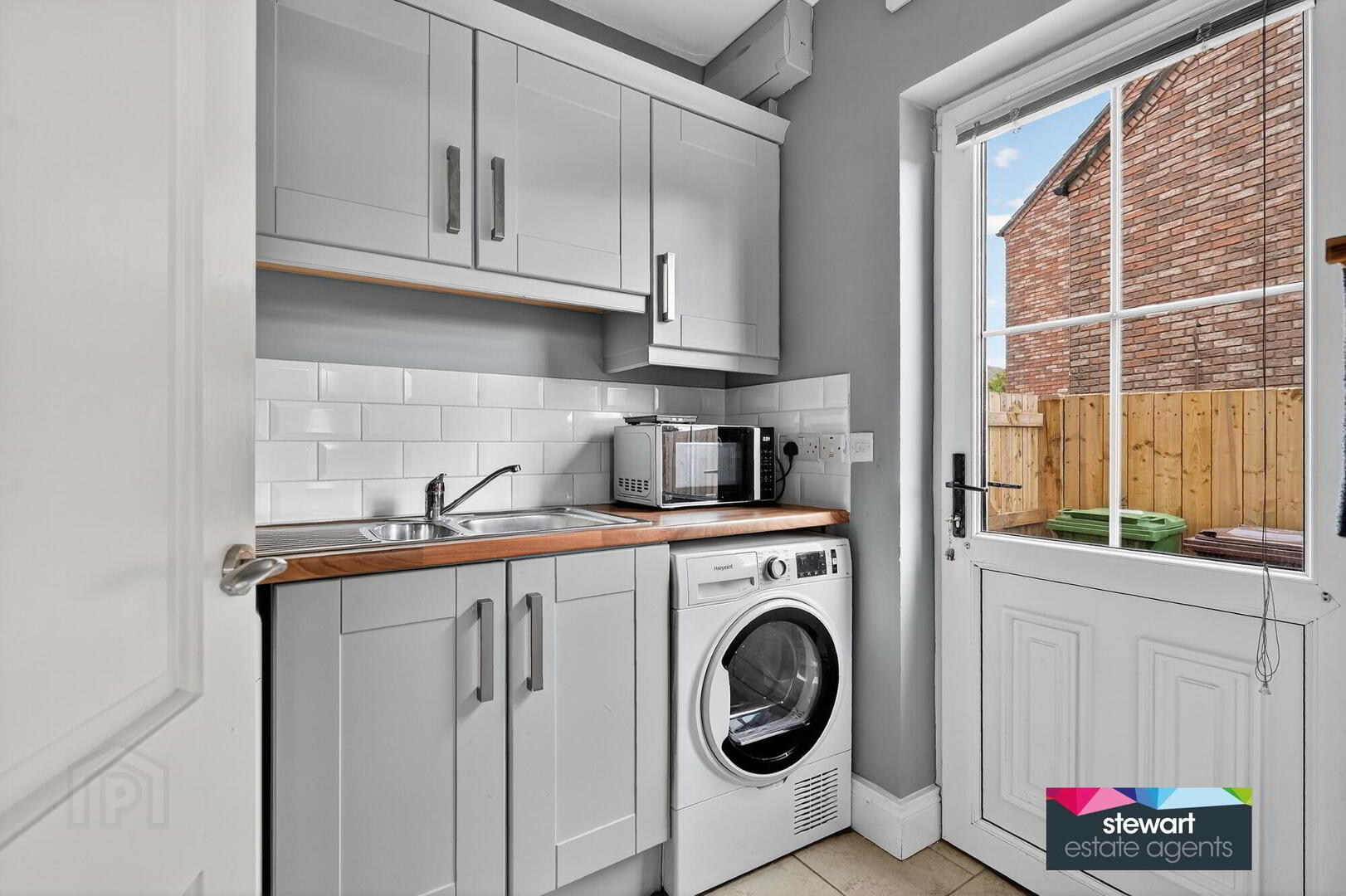 Separate utility room with fitted units and space for a washing machine and tumble dryer