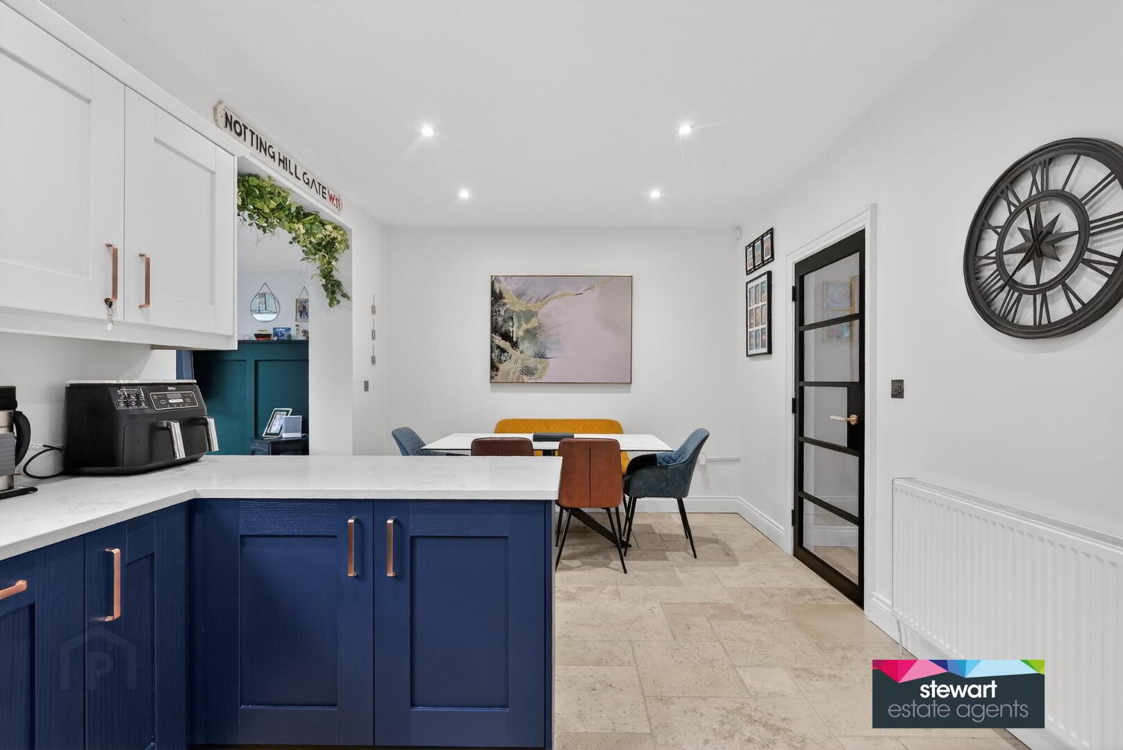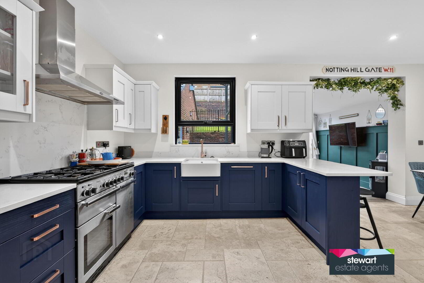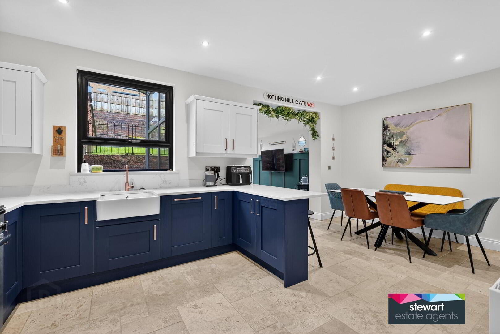 Stunning open plan kitchen with dining area leading to the sun room
