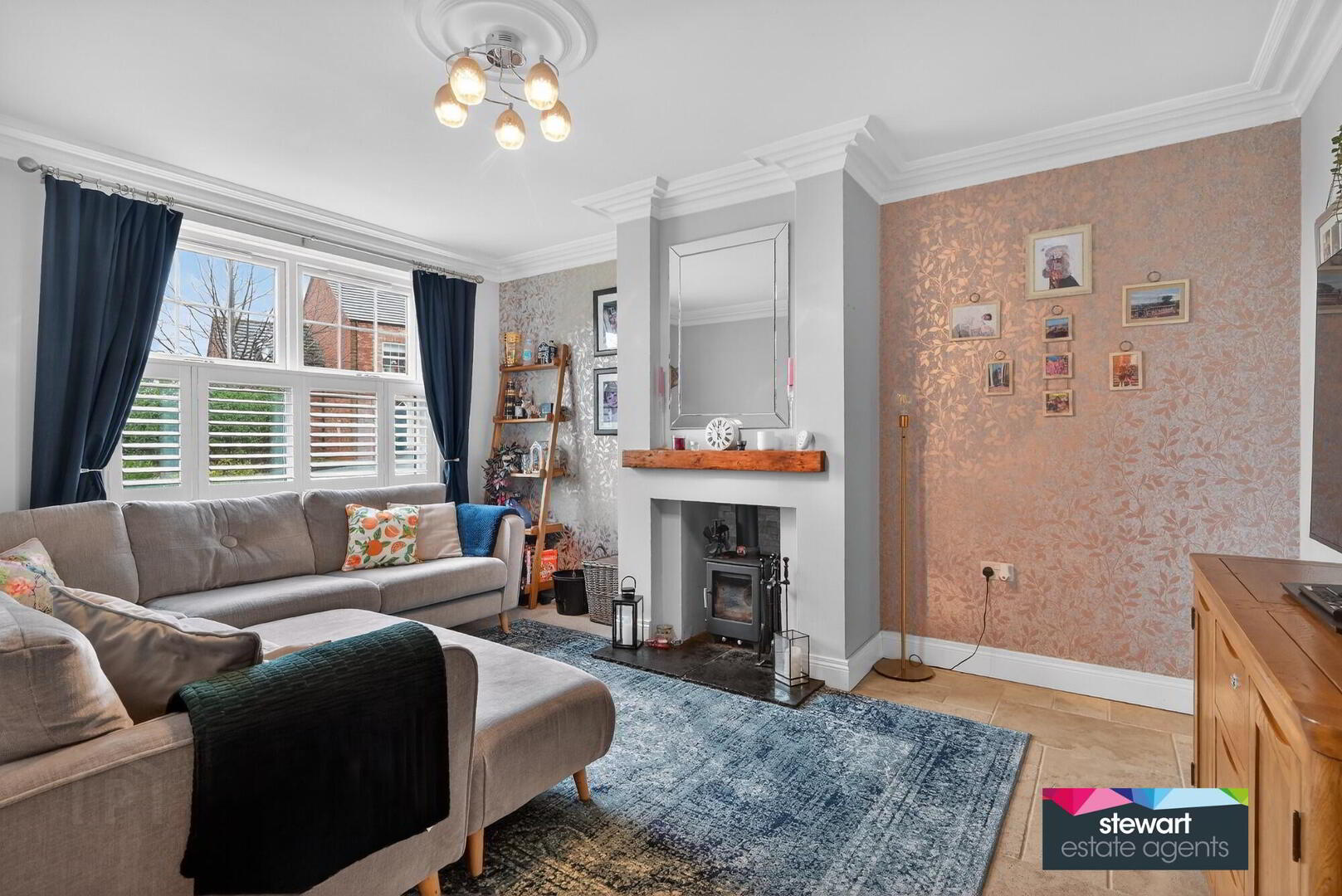 Drawing room with feature fireplace with inset stove