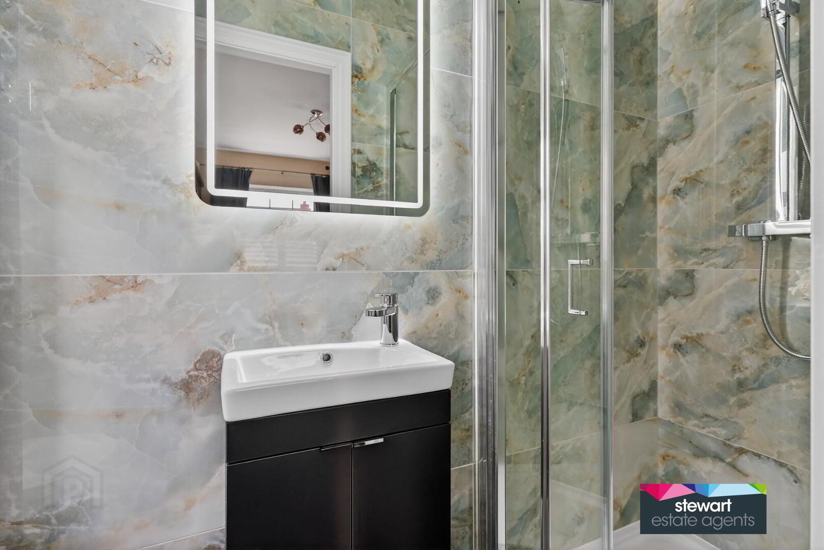 Beautifully renovated shower room with large shower cubicle, WC and wash hand basin