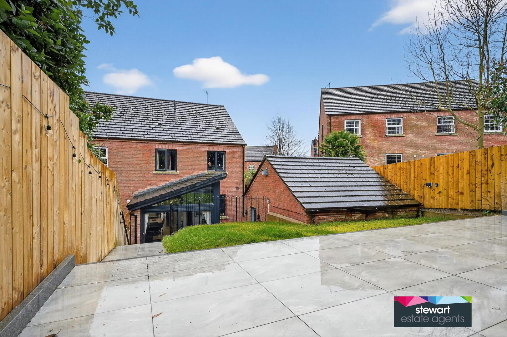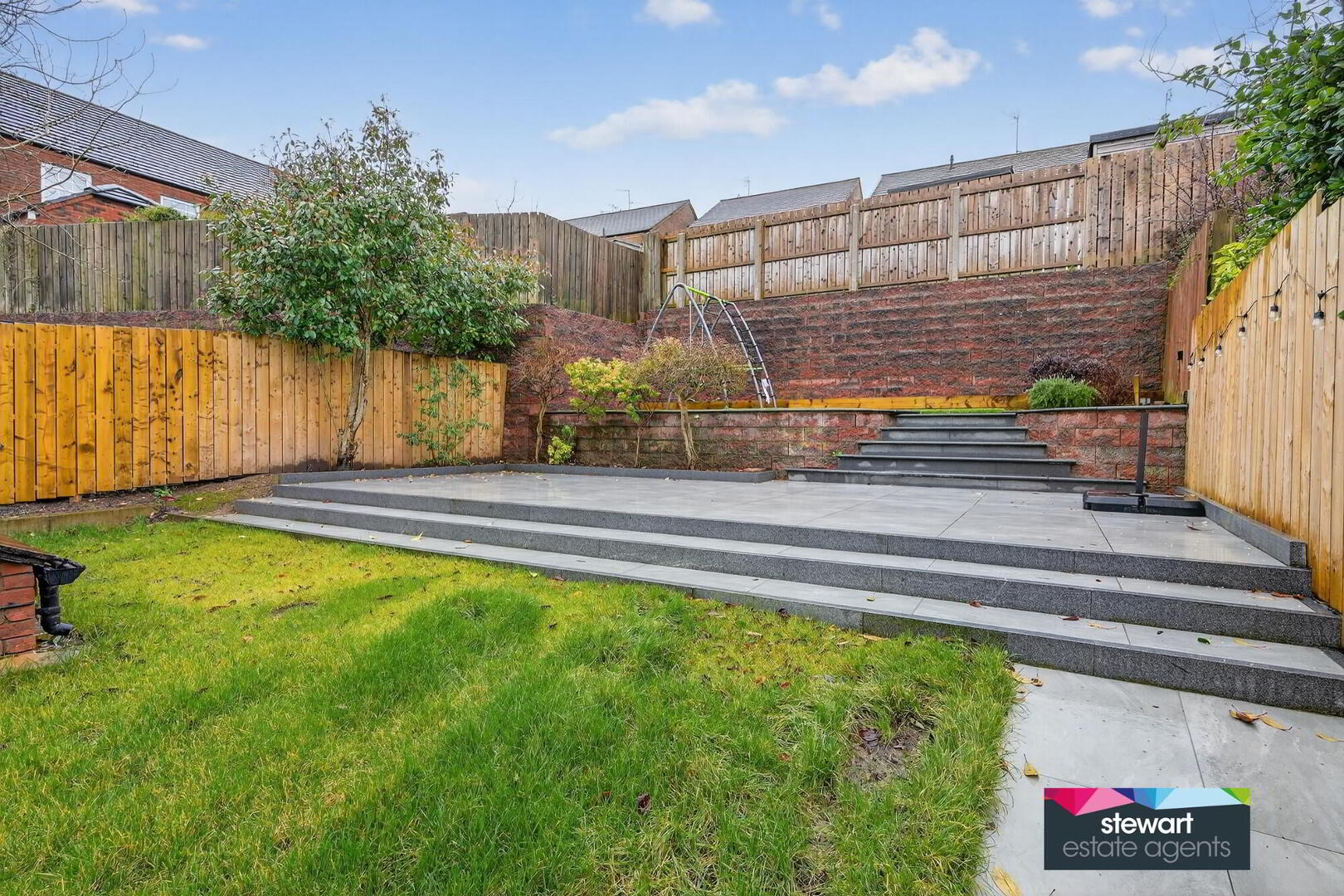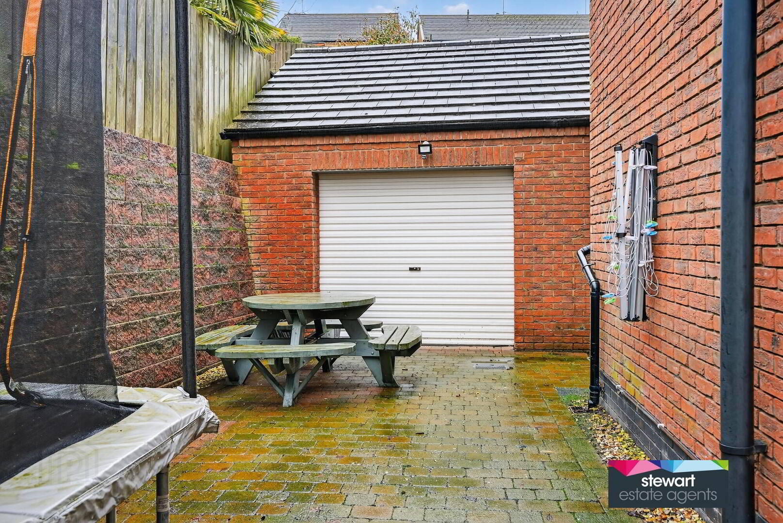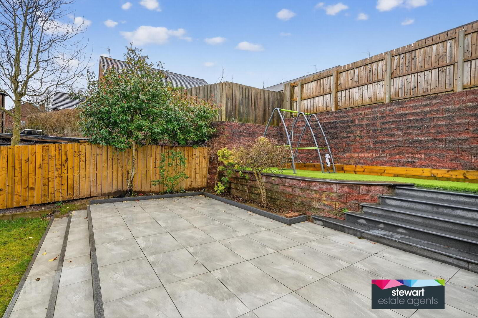 Gardens to the front and rear with feature rear garden laid out in lawns with newly laid patio area