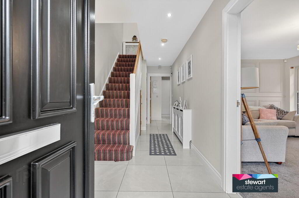 Spacious hallway with a spindled staircase to the first floor accommodation