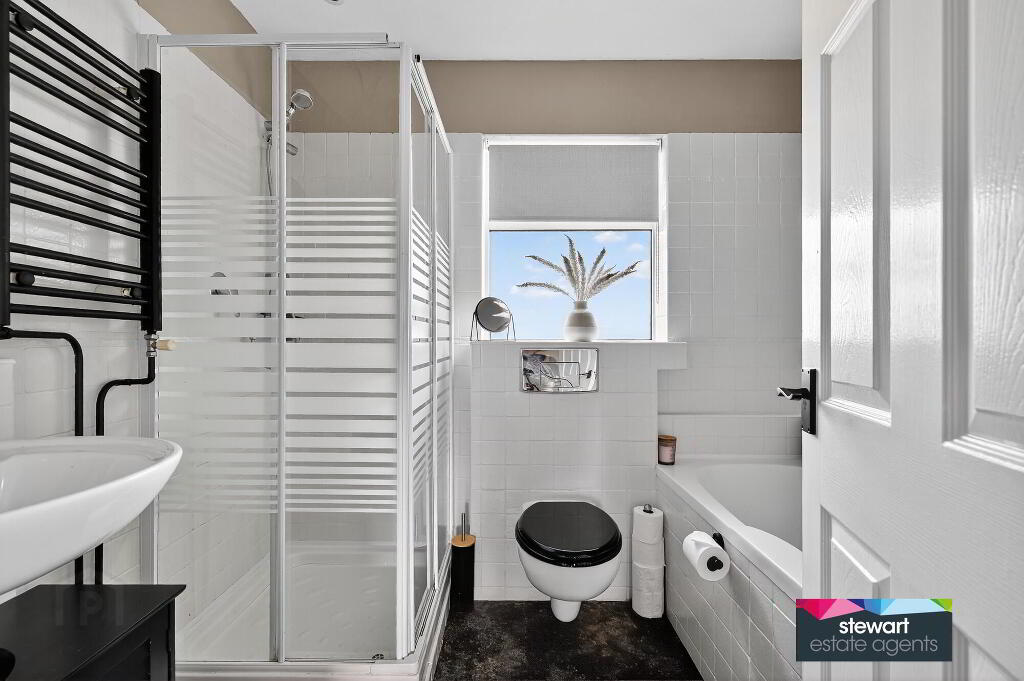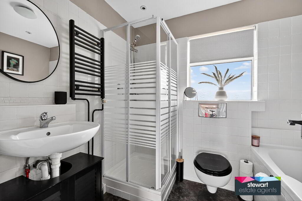 Bathroom on the first floor with a bath, WC and wash hand basin as well as a separate shower cubicle
