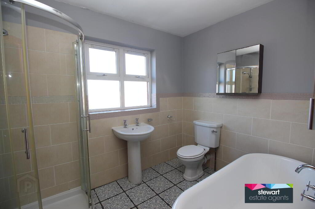 Bathroom on the first floor with bath, WC and wash hand basin. Separate shower cubicle