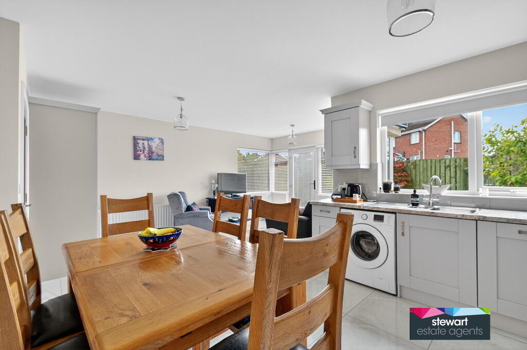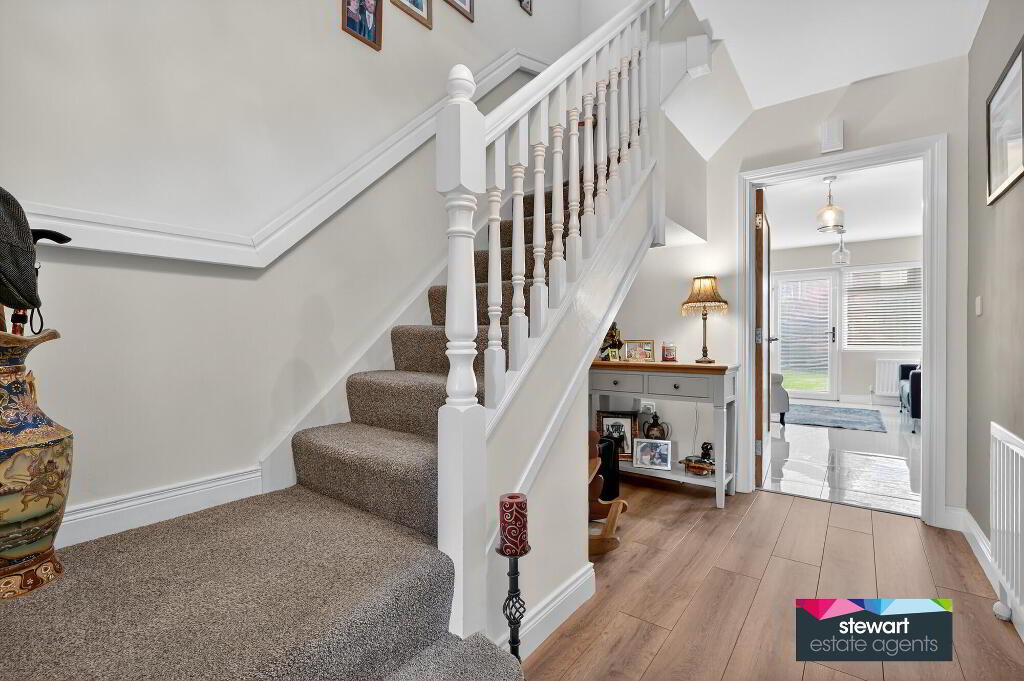 A very exclusive detached residence, finished and presented to an exceptional standard of specification for modern living, nestling within a much admired development of quality homes, located just off the Avenue Road and convenient to the Lurgan’s beautiful Park with lake and sports facilities, Lurgan Golf Club as well as Kings Park Primary School, local amenities and indeed Lurgan Town Centre. Good road networks have bus services to other provincial towns and cities.