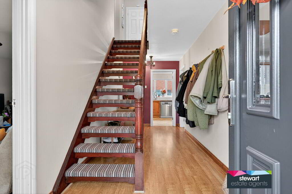 Bright and spacious hallway with a new PVC double glazed front door and matching side panels, spindled staircase to the first floor landing