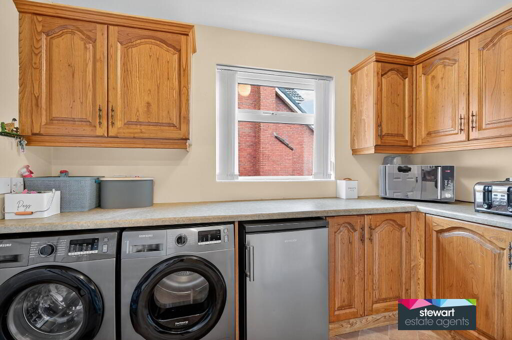 Separate utility room with fitted high and low level units including space for a washing machine and space for a dryer
