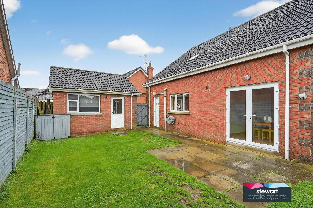 Neat garden to the front and rear laid out in lawns. Patio area to the rear