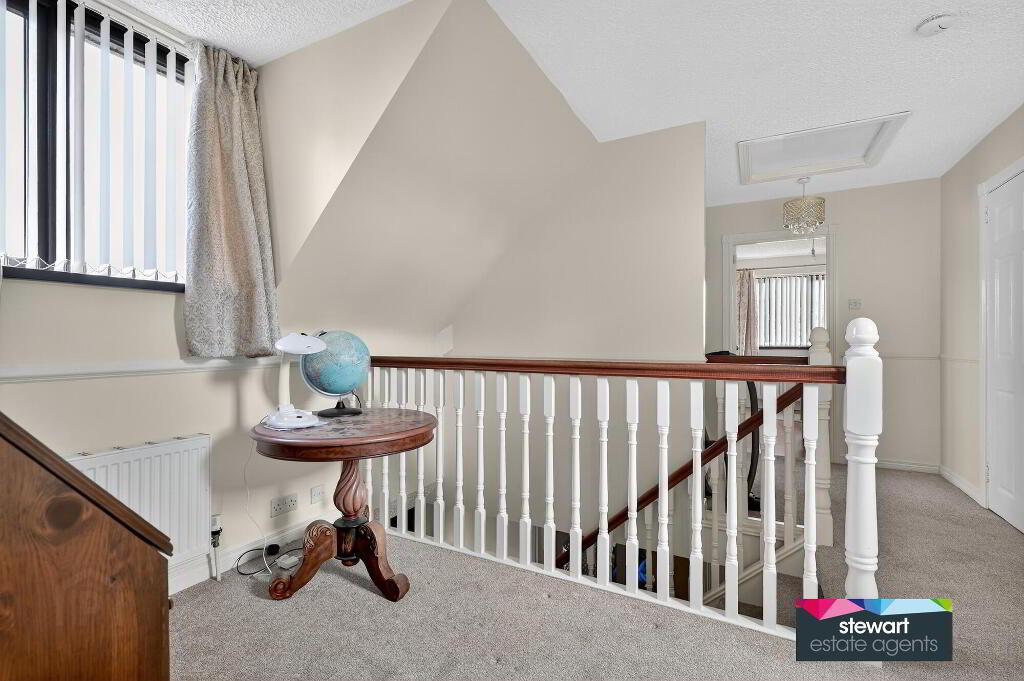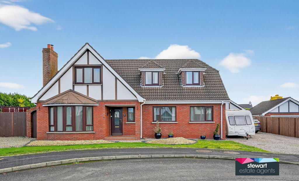 A very deceptively spacious and impressive detached ‘Tudor’ style chalet bungalow, commanding a spacious setting within this highly respected development of similar style, exclusive homes, located on the Inn Road and convenient to the local amenities of Dollingstown as well as good road networks for other provincial towns, providing a good opportunity for those needing to commute.
