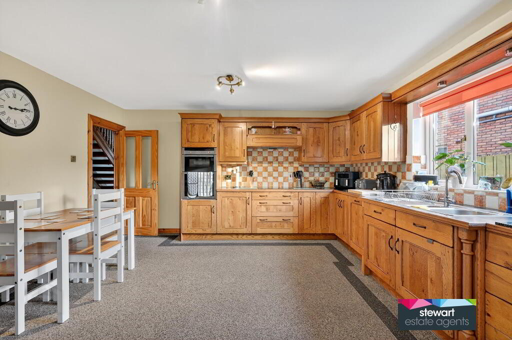 A truly deceptive detached chalet style bungalow providing much more accommodation than what might be apparent from first impressions, having a wonderful kitchen and dining area, open plan to a vaulted sun room with contemporary stove. The interior is flexible for alternative layouts including a 5 bedroom, 2 reception room format. Located on the outskirts of Moira in the town land of Lurganville, this delightful rural setting is convenient to good road networks for Moira, Rowandale integrated Primary School, Dromore, Hillsborough and the M1 interchange for Belfast and the west.