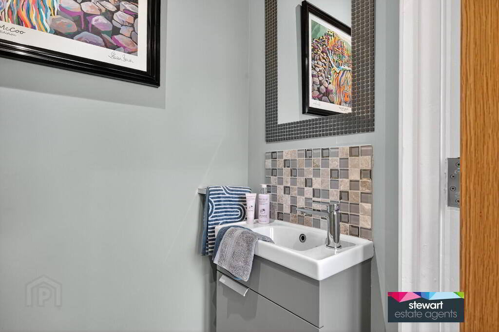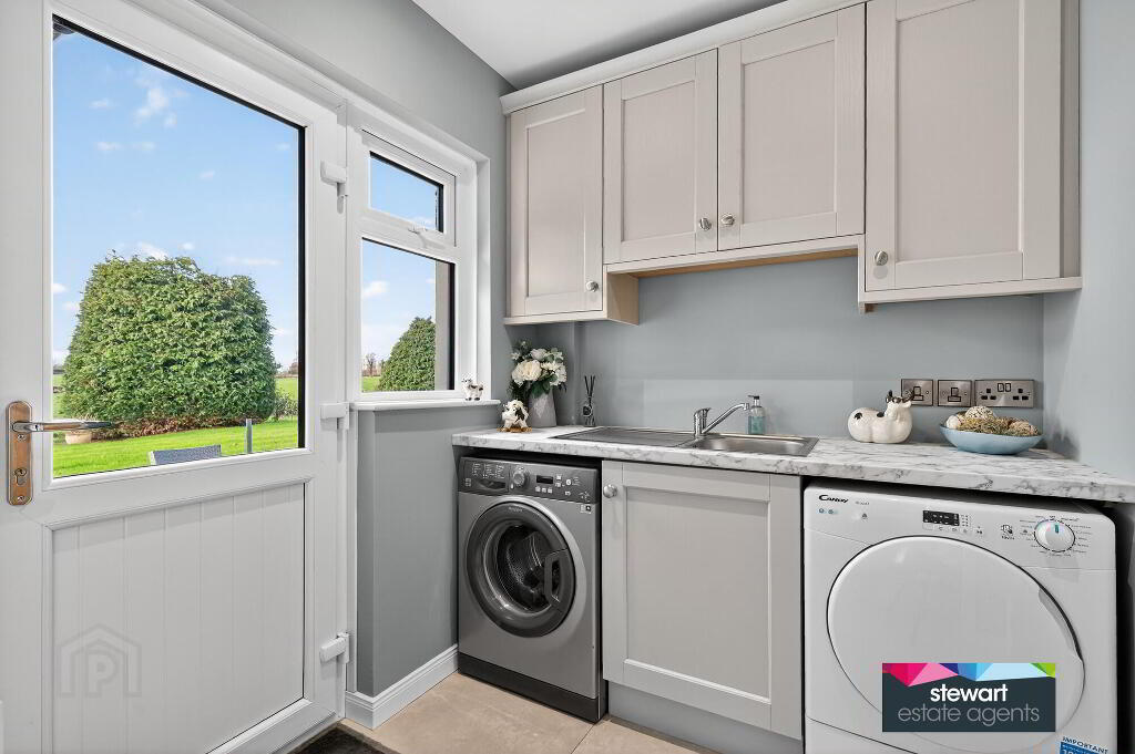Separate utility room with refitted high and low level units with space for a washing machine. Inset sink unit. Separate WC with wash hand basin.