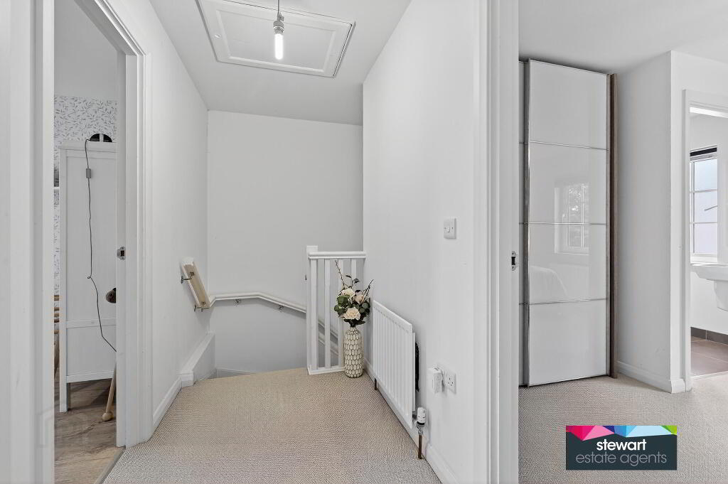 Attractive front door leading into a spacious hallway with contemporary style spindled stairs to the first floor accommodation