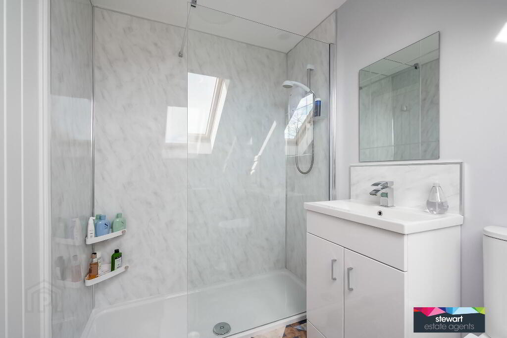 Shower room on the first floor with a large shower cubicle, WC and wash hand basin