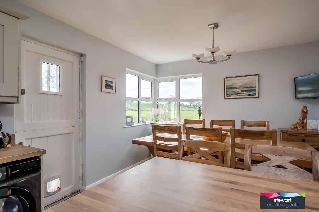 Spacious open plan kitchen and dining area with a feature stable style rear door and corner window