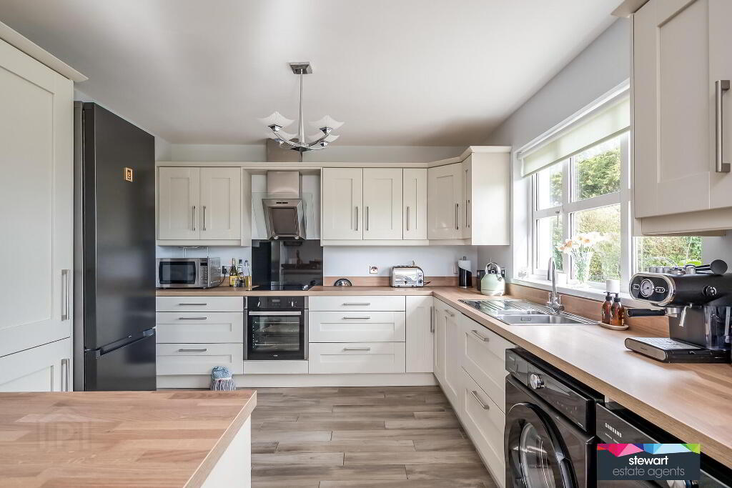Beautifully fitted kitchen having a wonderful range of high and low level cabinetry with built in oven and hob and extractor fan above, built in dish washer, space for a washing machine and space for dryer. Space for a free standing fridge/freezer