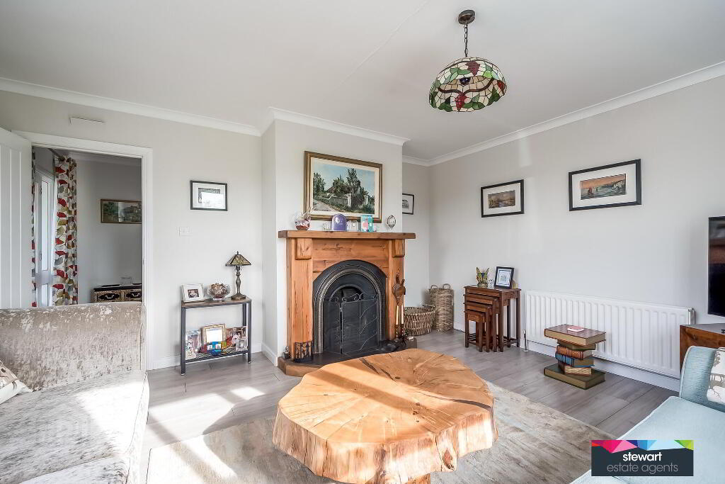 Elegant and bright living room with an attractive pine fireplace surround, antique cast iron inset and open fire