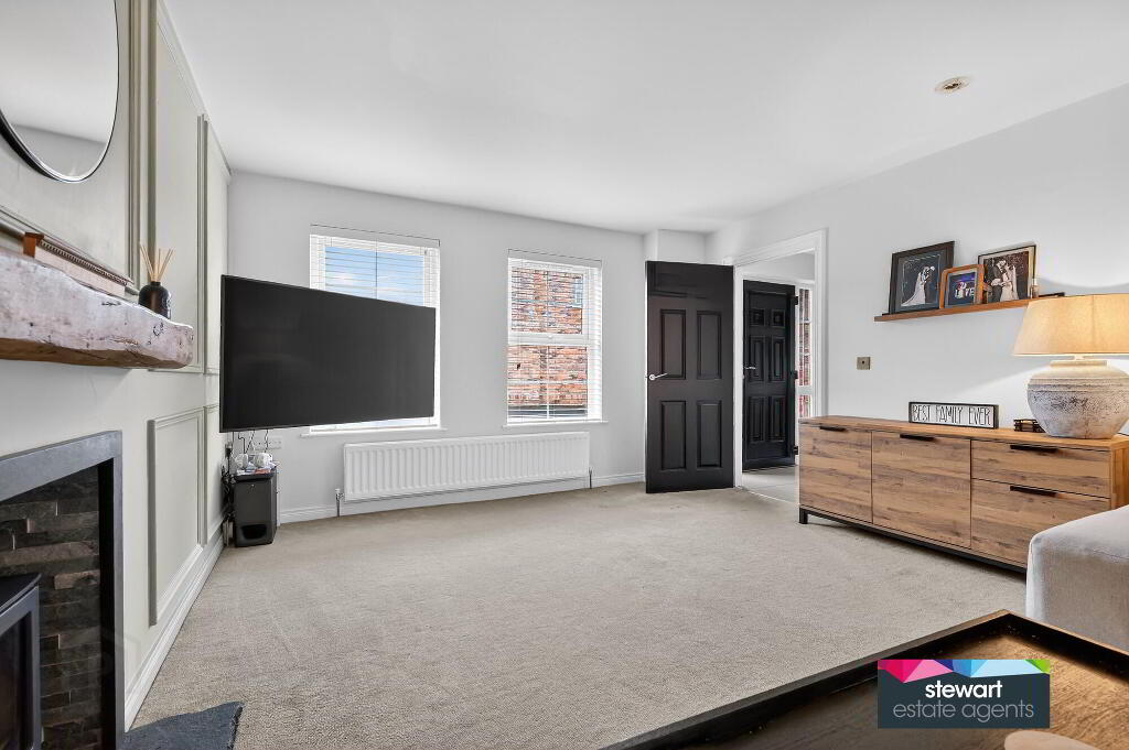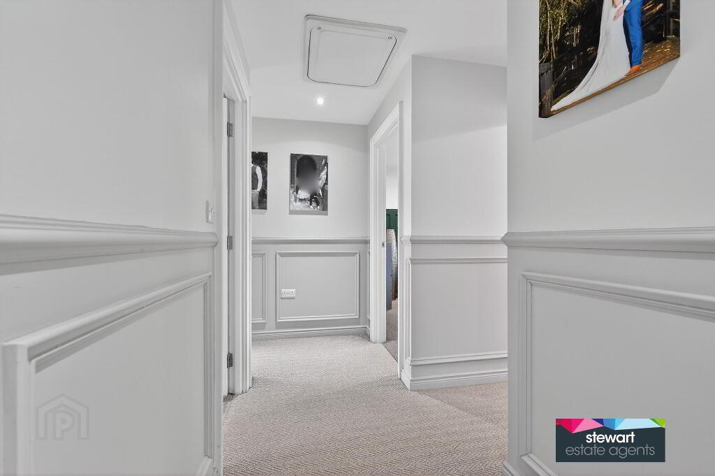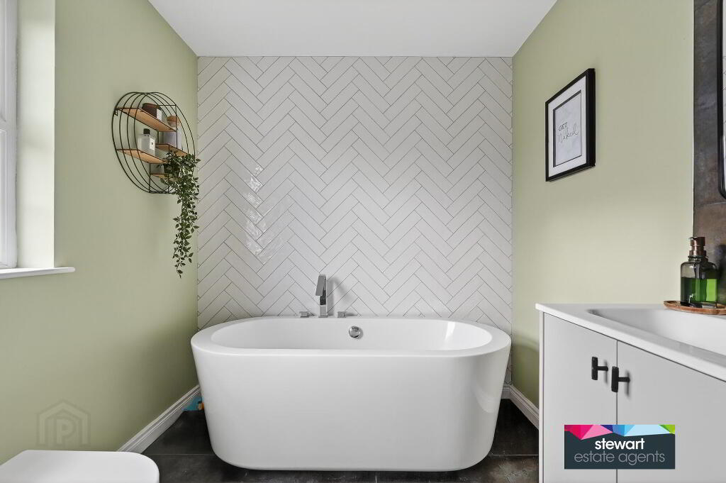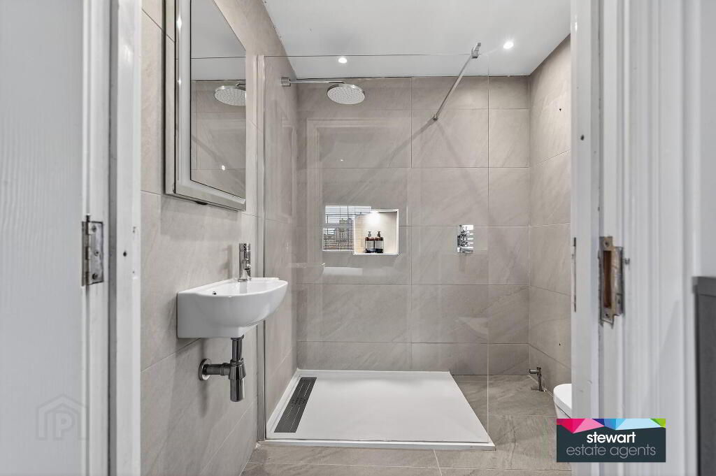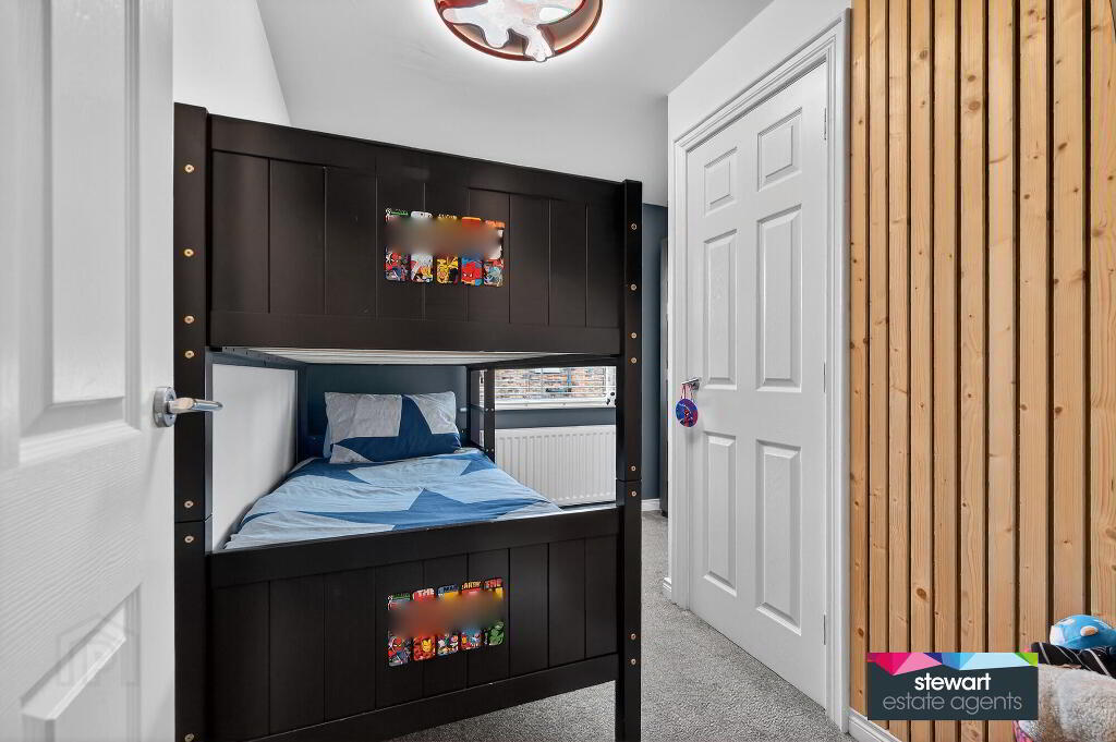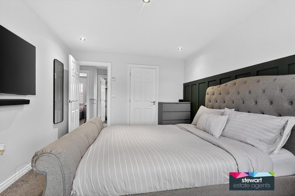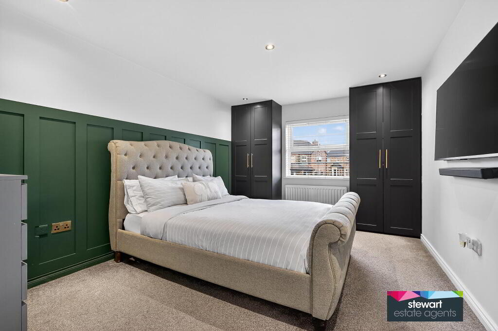 Three spacious bedrooms, master bedroom with a contemporary style ensuite shower room, two feature built in in wardrobes and a feature panelled wall