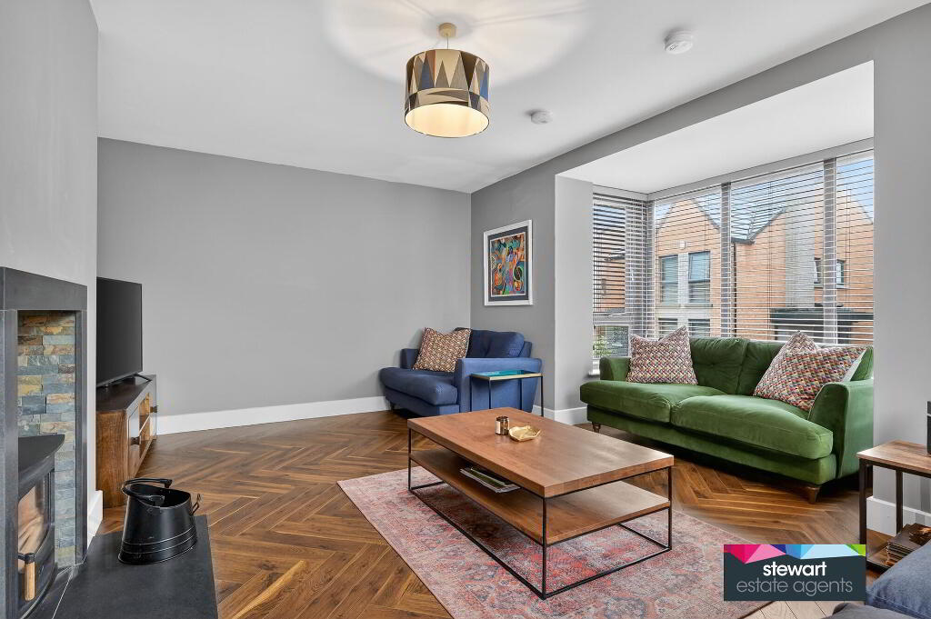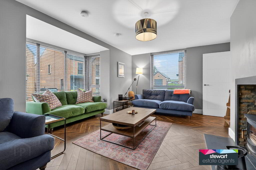 The bright and elegant living room has a feature box bay window and the first floor accommodation includes a practical bedroom layout including the principle bedroom with an ensuite shower room.