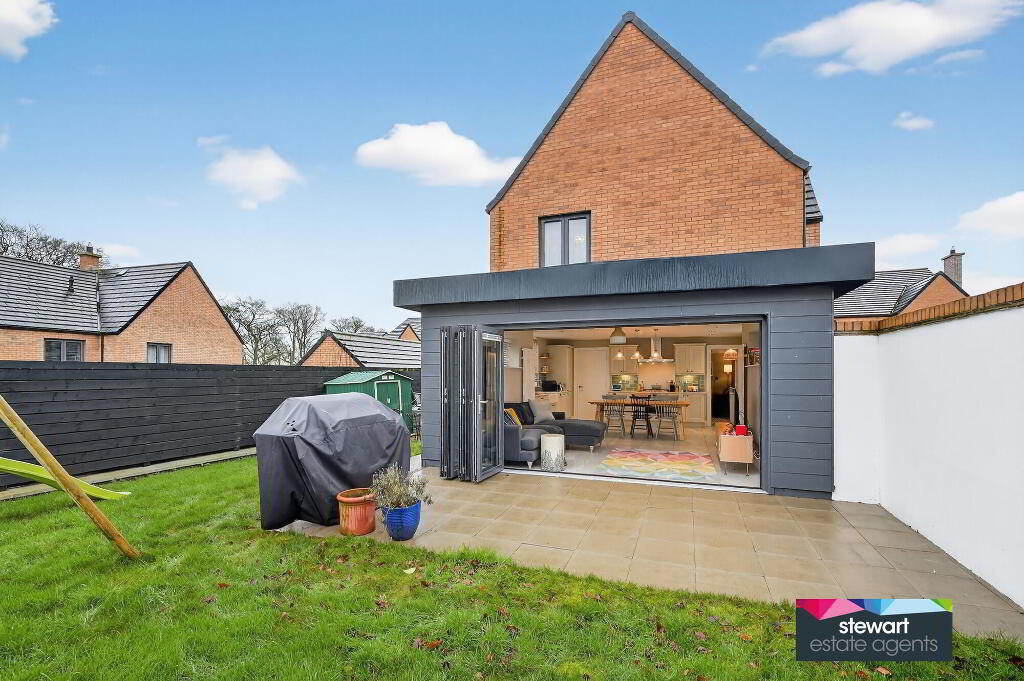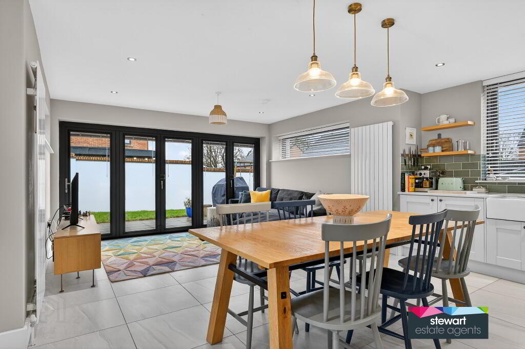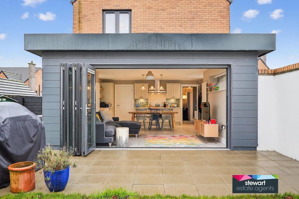This very fine detached contemporary style residence is a welcome addition to the current market, having a stunning architectural design, complimented by a contemporary style interior including a very spacious open plan live-in style kitchen with wall to wall bi folding doors leading to the rear gardens.