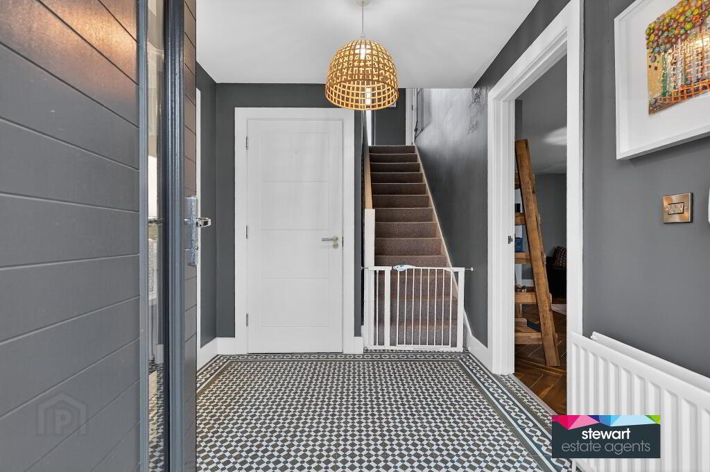 Feature front door leading into a bright and airy hallway with stairs to the first floor accommodation. Beautifully tiled floor
