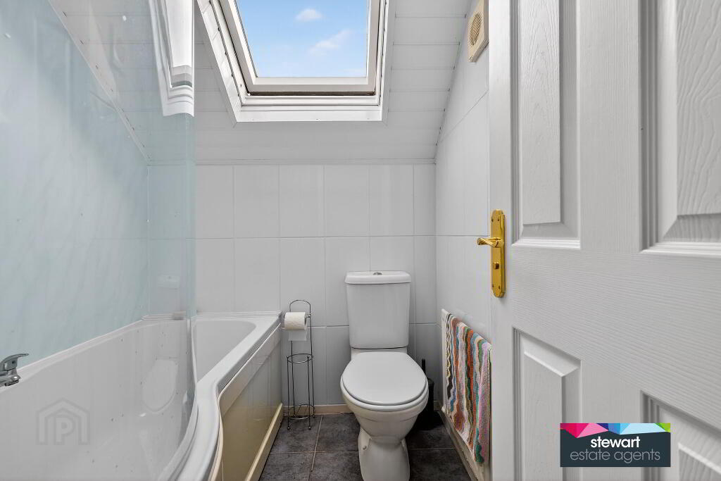 First floor bathroom with bath and shower fitment over, WC and wash hand basin