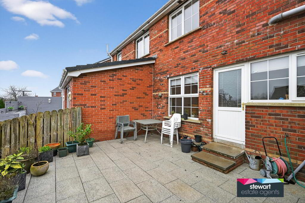 Neat gardens laid out in lawns to the front and rear. Patio area to the rear