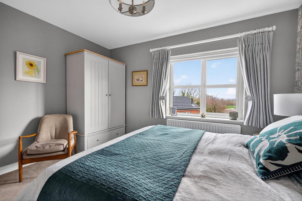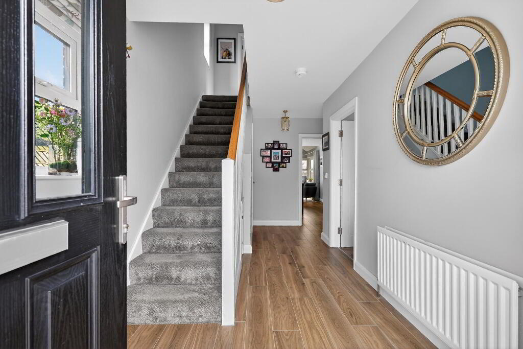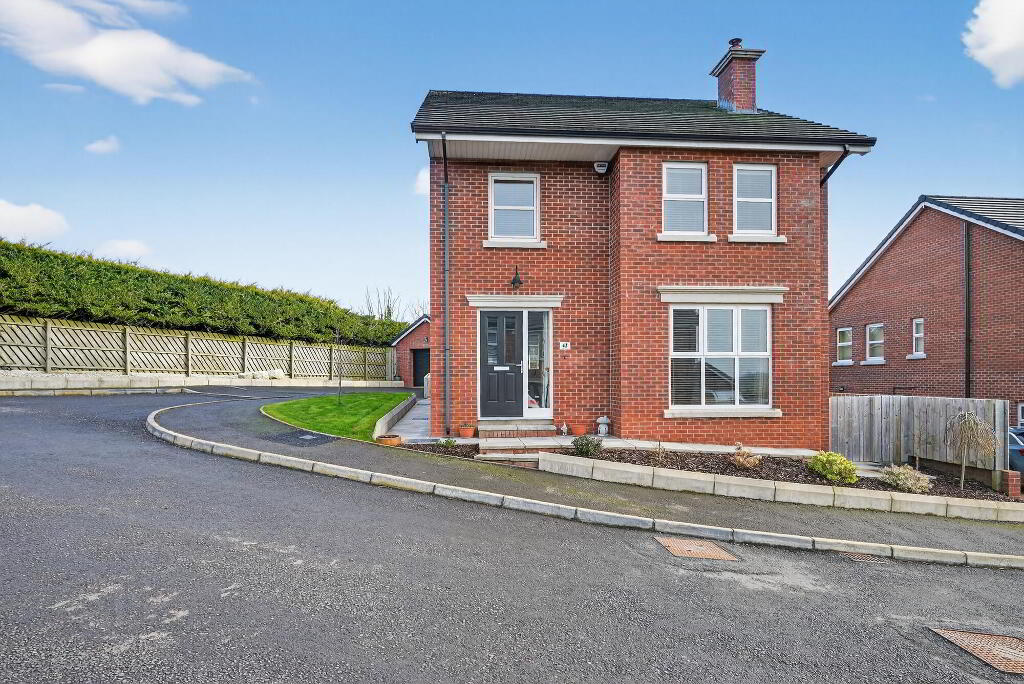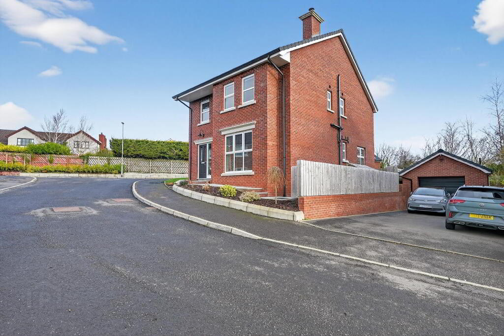 A beautiful modern four bedroom family home which offers spacious, well-planned accommodation finished to a high standard throughout. Situated within a quiet cul-de-sac on the edge of the historic Moira village, with views of the Lagan Valley countryside.