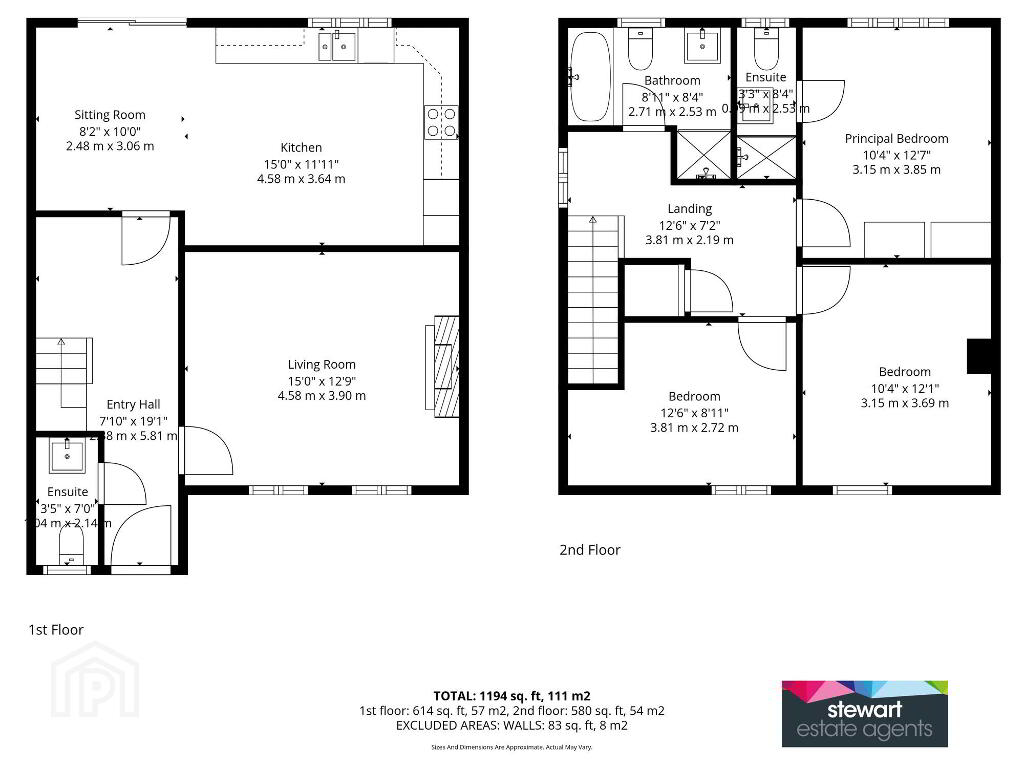 Three generous bedrooms, master bedroom with fully tiled ensuite shower room with shower, WC and vanity wash hand basin