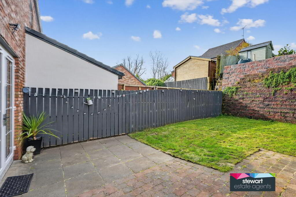 Neat gardens to the rear laid out in lawns with patio area. Parking area to the front. Brick paved driveway at the side