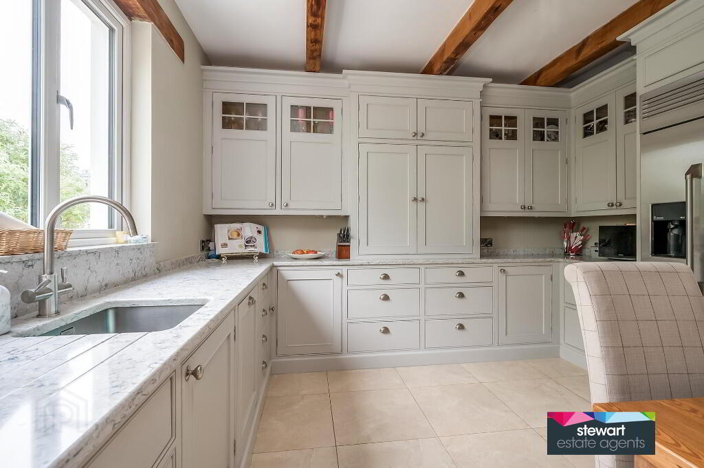 A stunning country style kitchen, individually designed with a range of bespoke cabinetry and quartz stone work surfaces