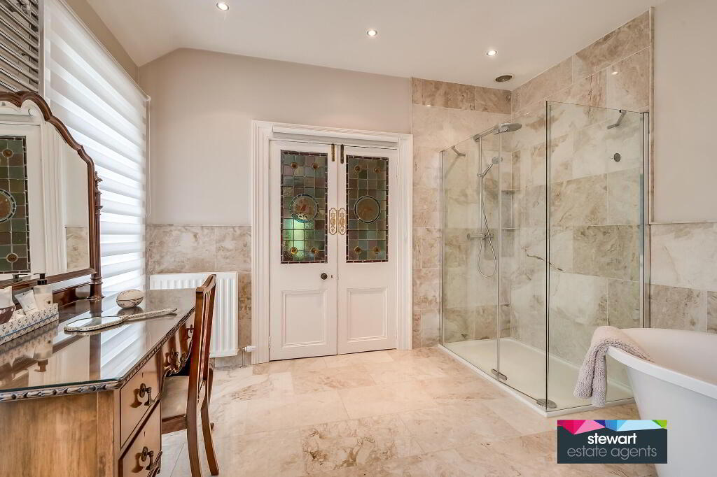 Four double bedrooms, master bedroom with ensuite bathroom including a bath WC and wash hand basin. Bedroom two with an ensuite shower room with shower cubicle, WC and wash hand basin