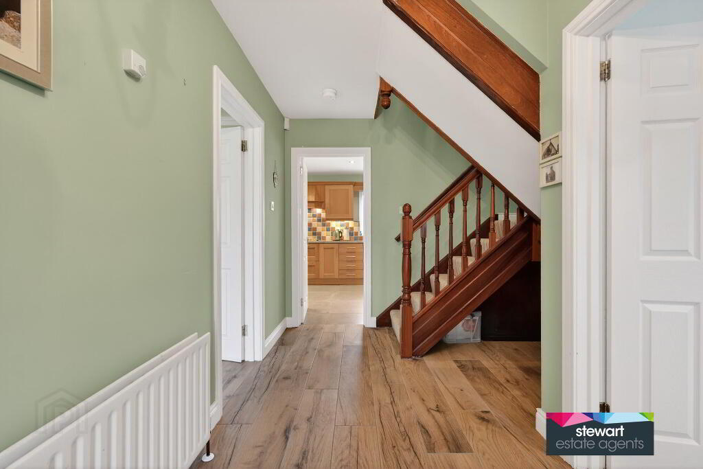 Attractive front door and hallway with a feature spindled staircase to the first floor accommodation. Attractive wood effect tiled floor