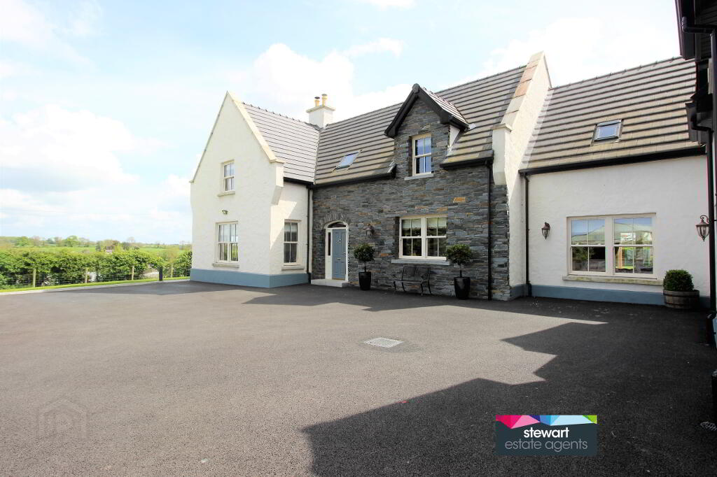 An individually designed exclusive residence enjoying a prime position on the Ballymacbredan Road with stunning countryside views to the sunny aspect rear garden