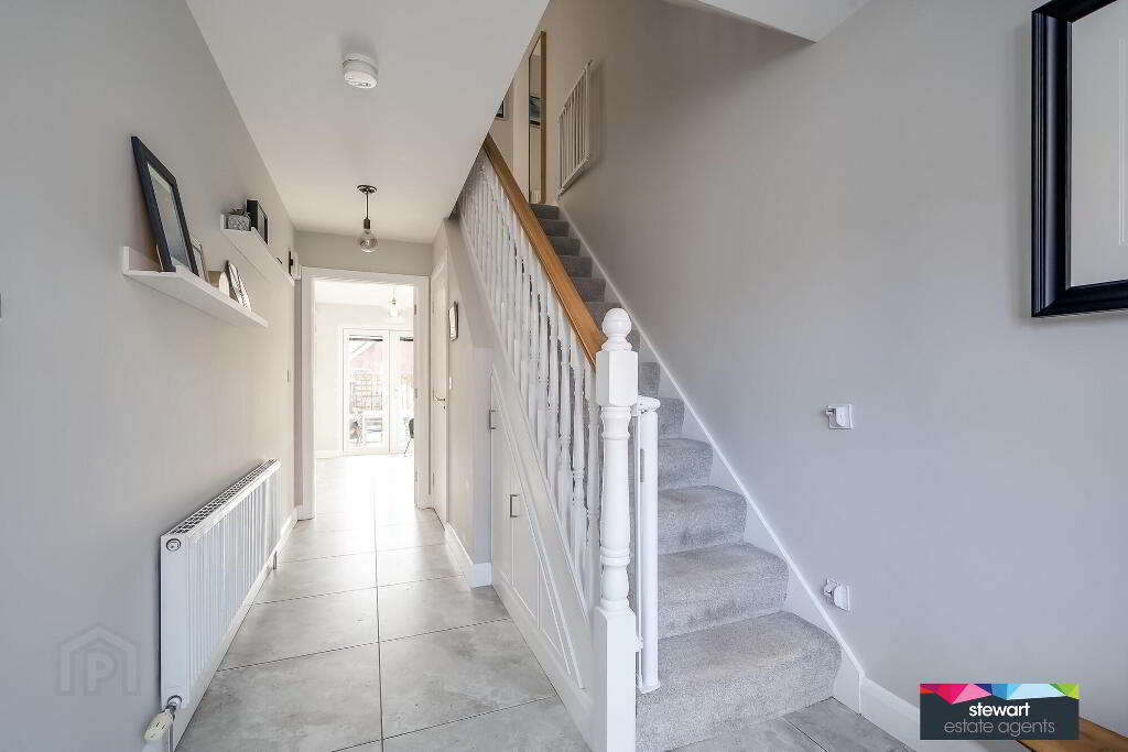 A truly exceptional contemporary style semi-detached home providing wonderfully designed interior accommodation with its practical proportions and high standard of finishes throughout, which will immediately appeal to a wide spectrum of potential pruchasers. The property enjoys a cul-de-sac position with in the exclsuive Limestone Meadow development, convenient for Rowandale Integrated Primary School and the bustling village for all amenities as well a road, rail and bus networks for other provincial towns and cities. The garage is currently used as a studio which can make an ideal utility room or gymnasium if required. Viewing a must.